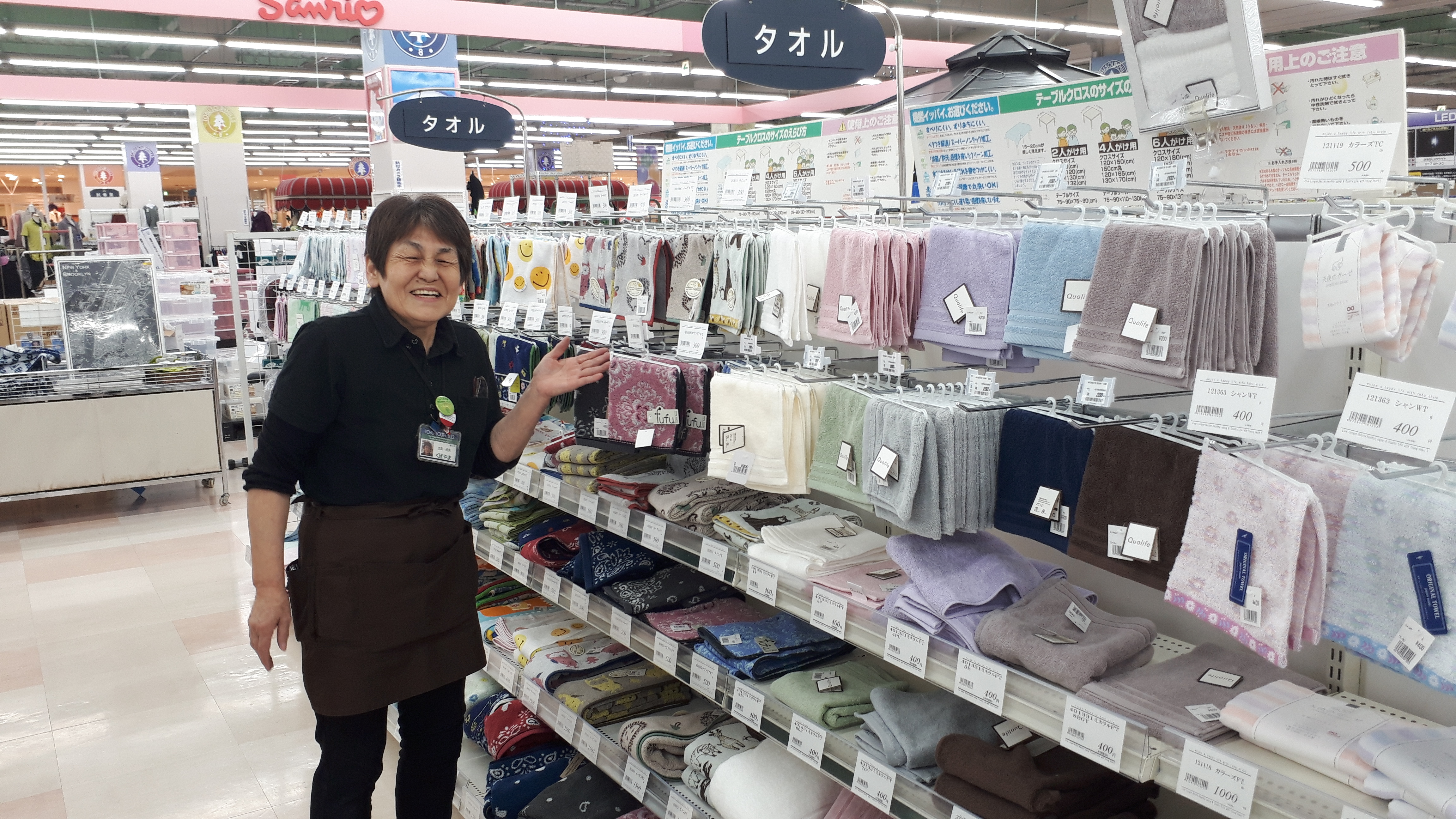 寝具インテリアコーナーよりご案内いたします。本日は東武一の市開催!当コーナーでは色柄いろいろ取り揃えた定番タオル各種を今付いている価格よりレジにてさらに特別割引いたします!ぜひこの機会に当店寝具インテリアコーナーでお買い求めください!