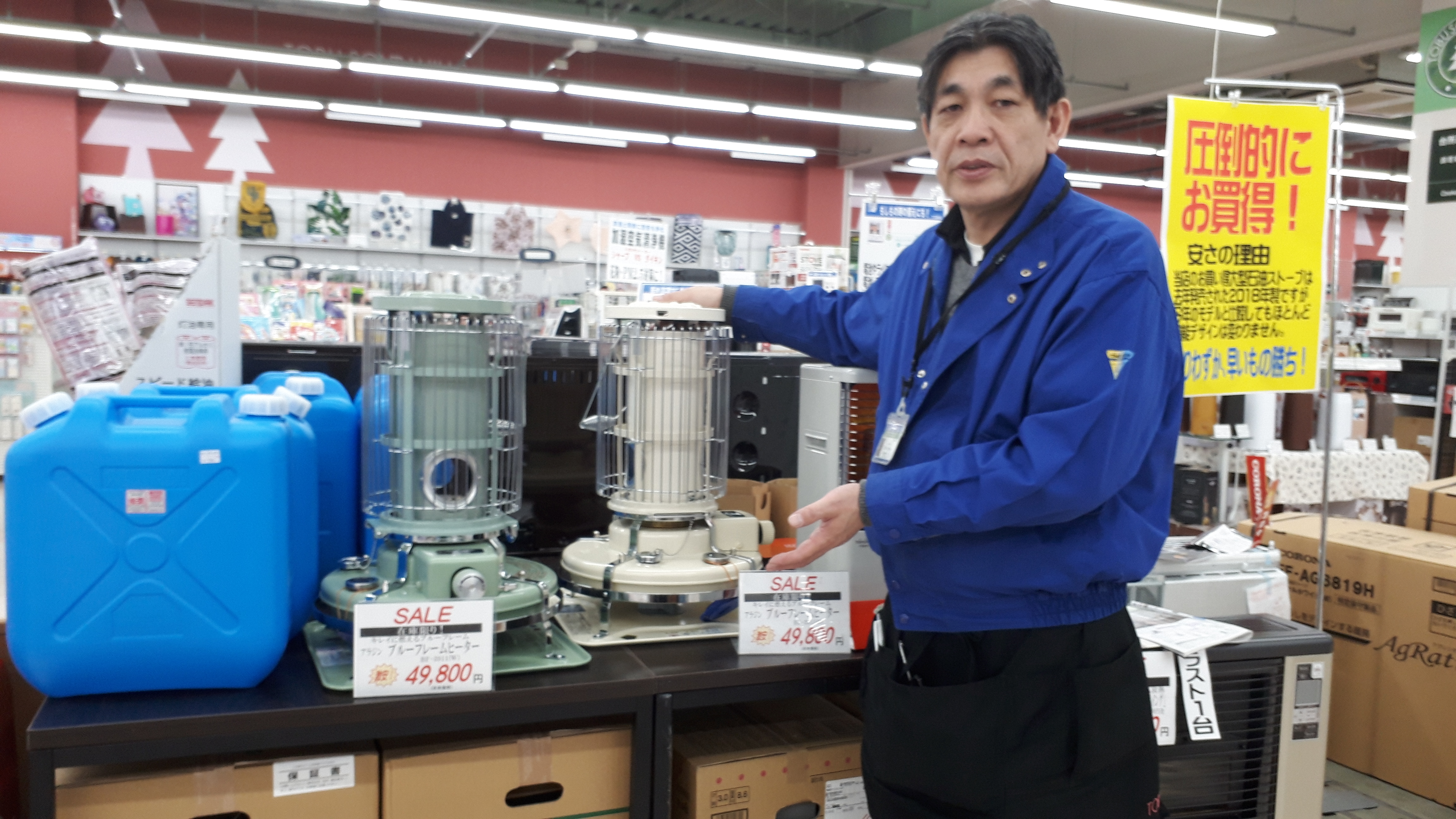 家電コーナーよりご案内いたします。只今当コーナーでは冬物値下げ処分といたしまして人気のストーブや加湿器各種をお値下げ特価で販売中です!ぜひこのお買得な機会に当店家電コーナーでお買い求めください!