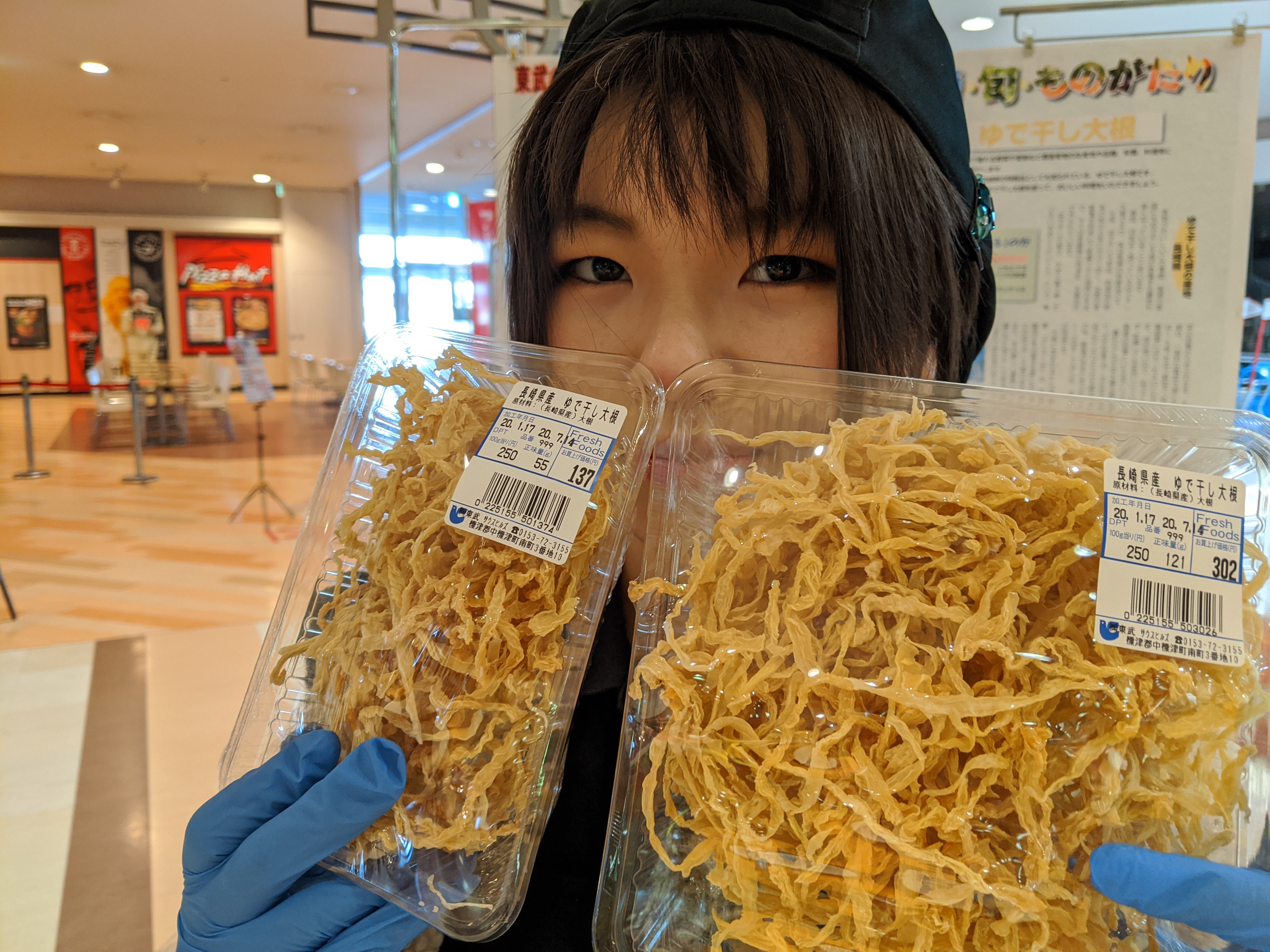 青果コーナーでは茹で干し大根を販売中!1回茹でてから干すことによって甘みが出てオイシイんです!食物繊維もたっぷりですので是非ご利用くださいませ