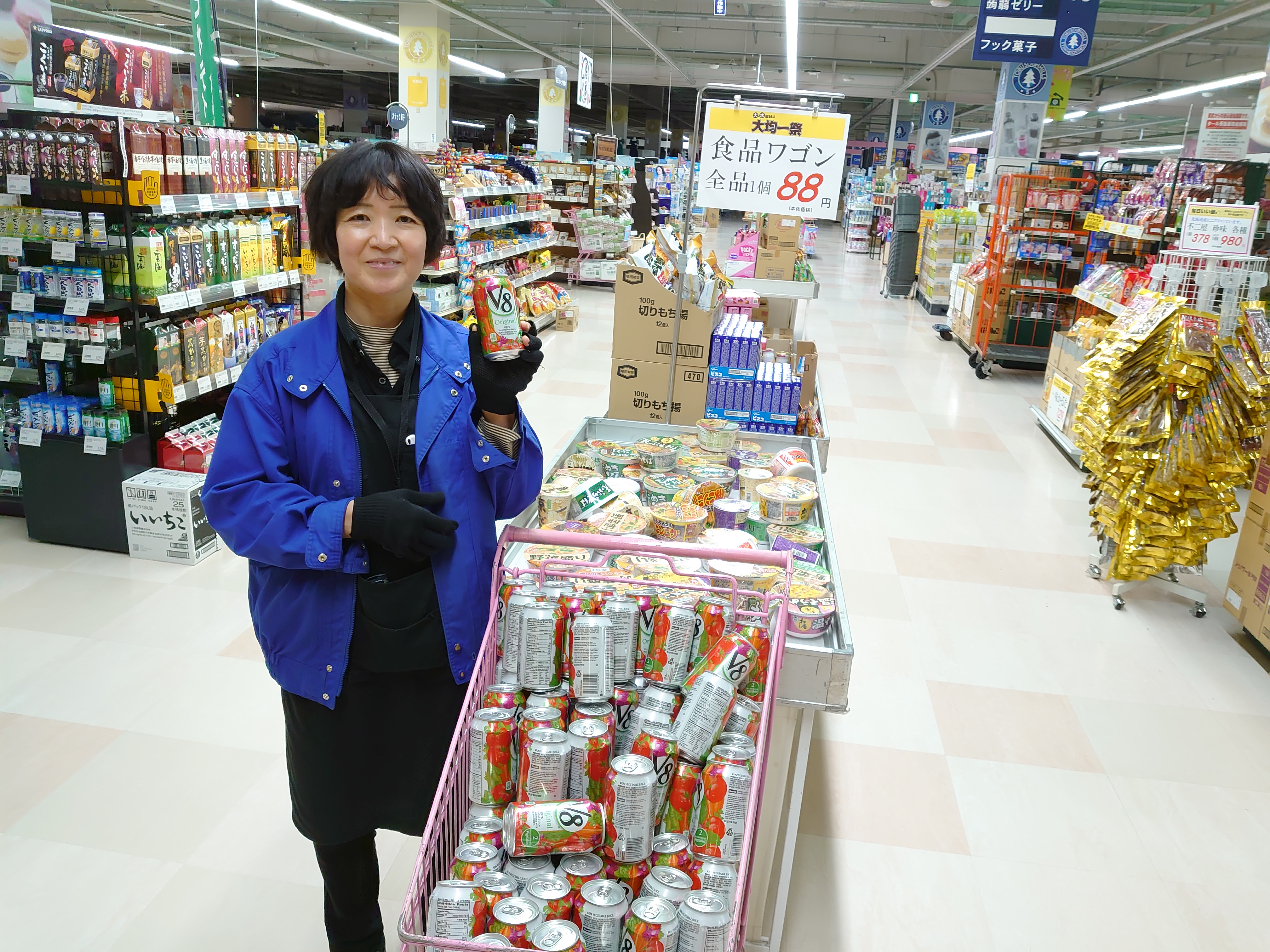 一般食品コーナーでは食料品、お菓子の88円均一を開催中