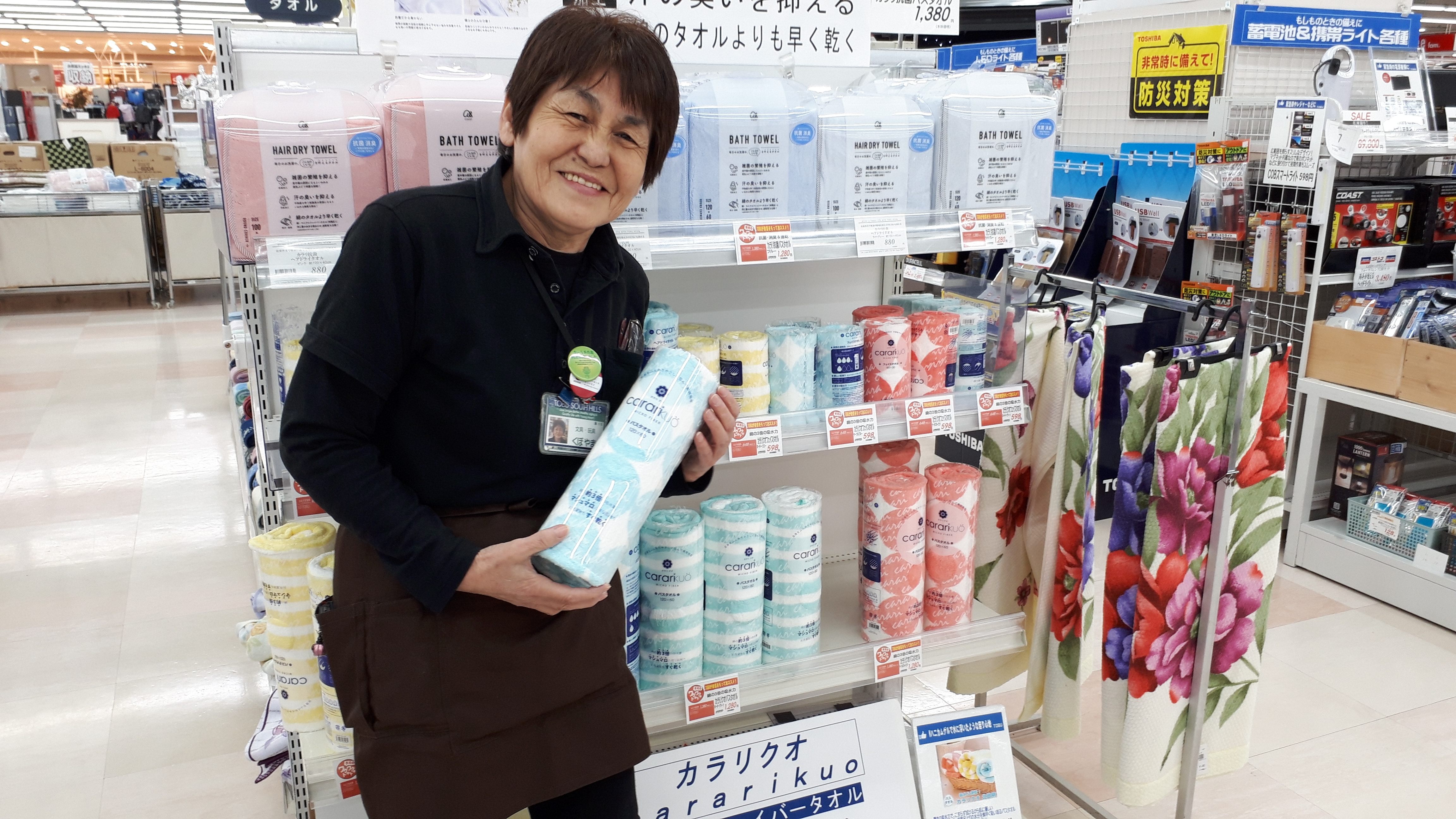 寝具インテリアコーナーよりご案内いたします。只今当コーナーでは綿の約3倍の吸水力でお洗濯後もすぐに乾くマイクロファイバータオルカラクリオをお買得価格でご奉仕中です!ぜひこの機会に当店寝具インテリアコーナーでお買い求めください!