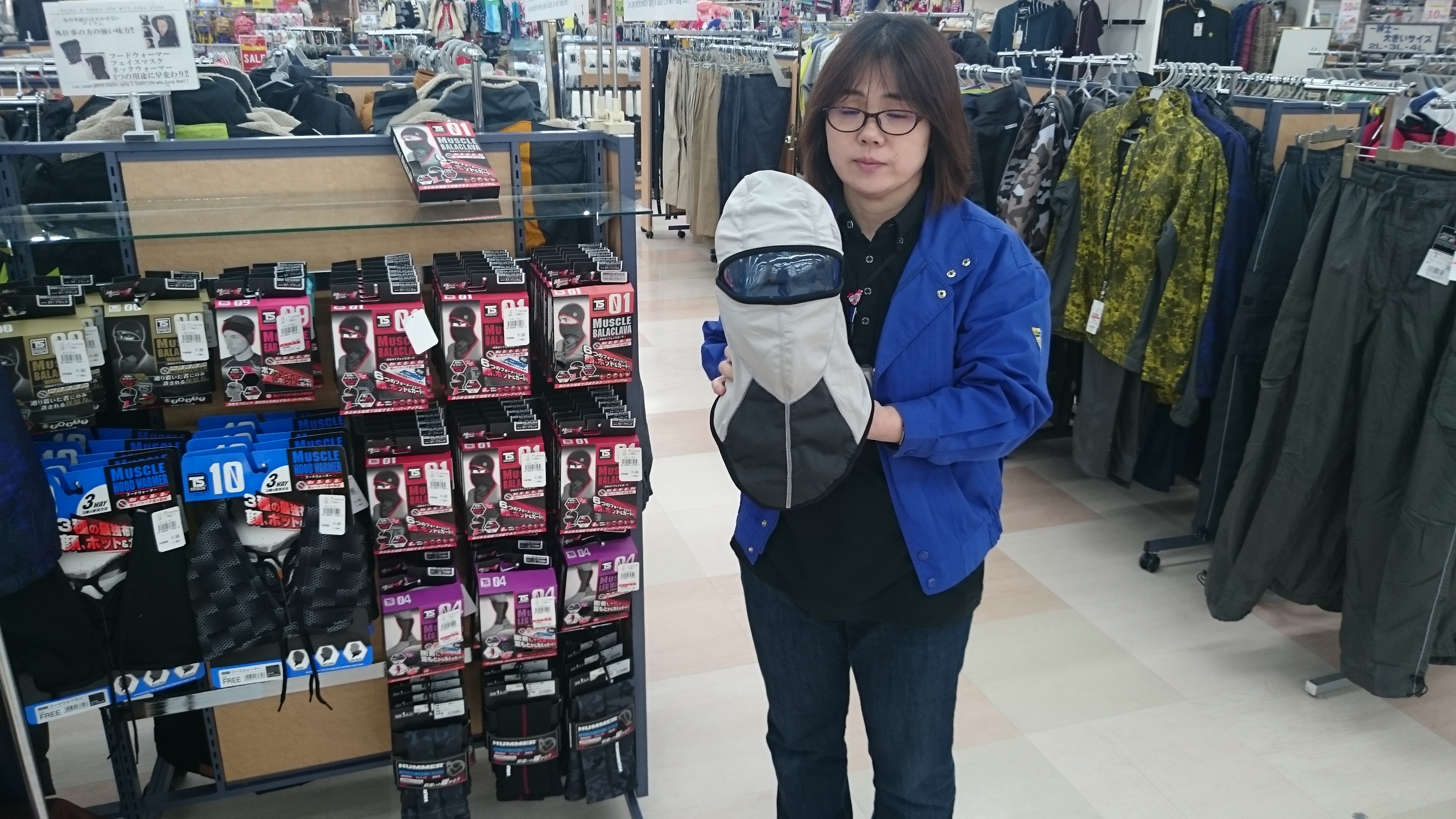 おはよーございます明日は大雪予報です!除雪の準備は?東武はまだ除雪に必要なアイテムを品揃えします!まずはフェイスマスクです!風の強い日の外の作業には欠かせないです!是非今日東武で除雪の準備を!