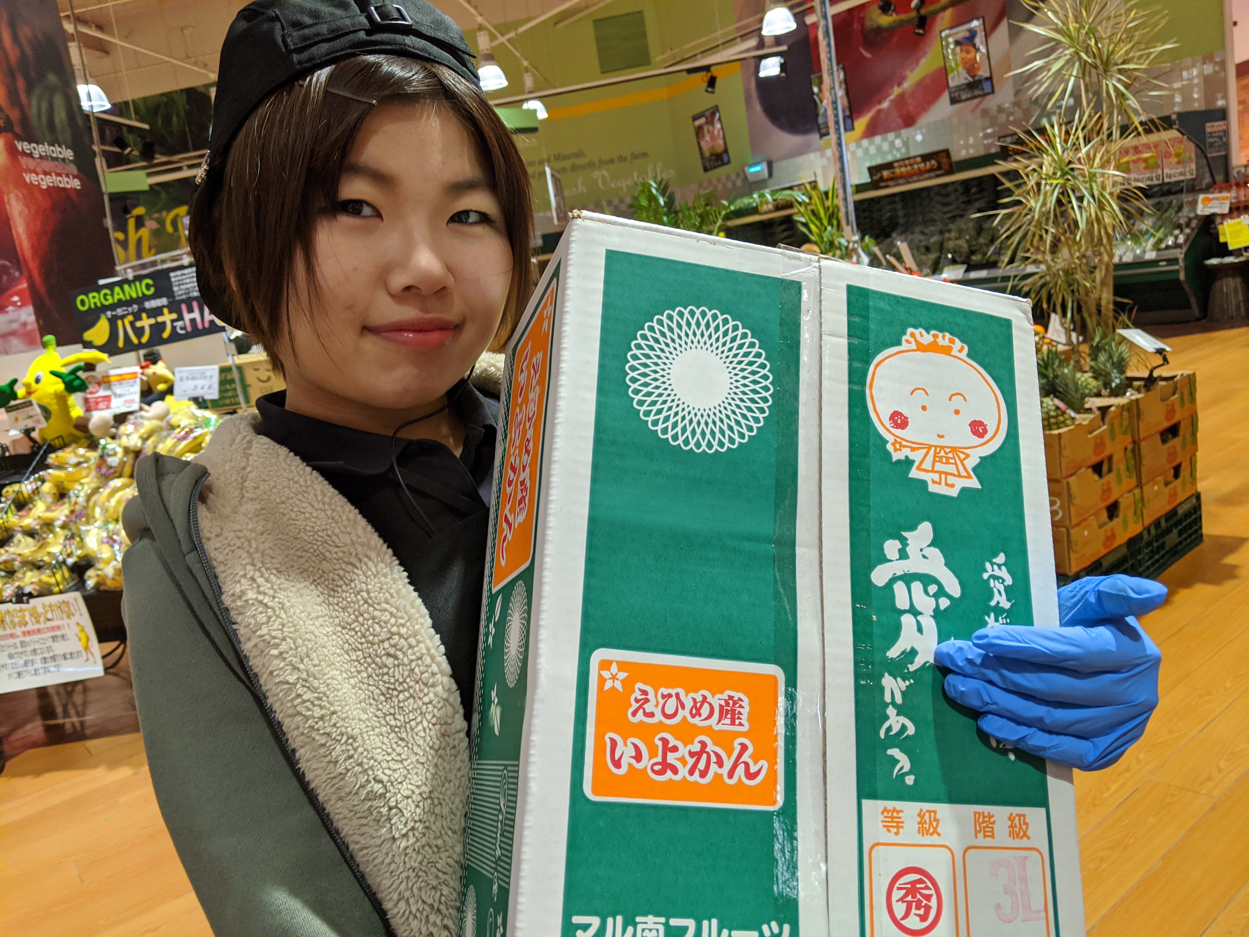 2日連続一の市開催中の本日はいよかんの箱がお買い得ですよ!5kg入で990円にて販売中ですので是非ご利用くださいませ