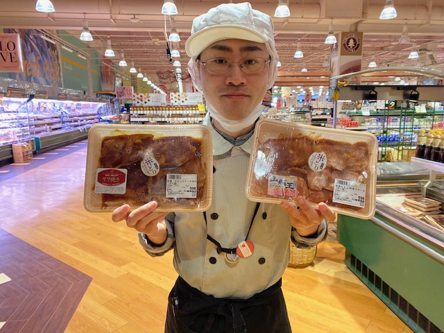 おはようございます、ミートコーナー本日のおすすめ商品は、米どりチキンステーキ味付です!! 米を配合した飼料で育てた、柔らかさと香りが特徴の米どりを使用したチキンステーキ!! 味はてりやきと山賊の2種類で、焼くだけ簡単調理でおかずができあがります! どうぞご利用くださいませ!