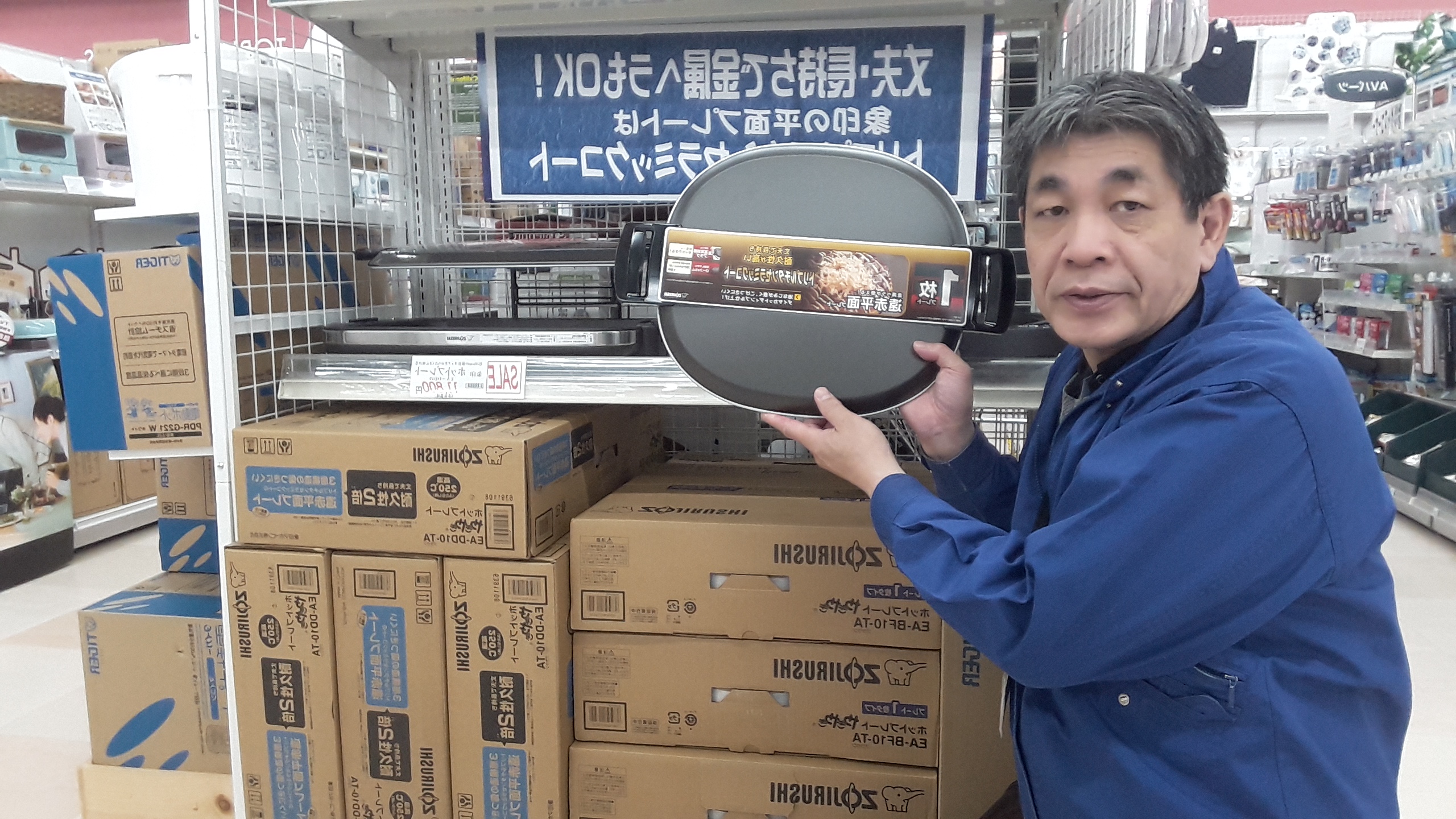 家電コーナーよりご案内いたします。当コーナーホットプレートのオススメは象印のトリプルチタンセラミックコート平面プレート付きホットプレートです!丈夫で長持ち、耐久性が高く金属ヘラもOKです!ぜひ当店家電コーナーでお買い求めください!