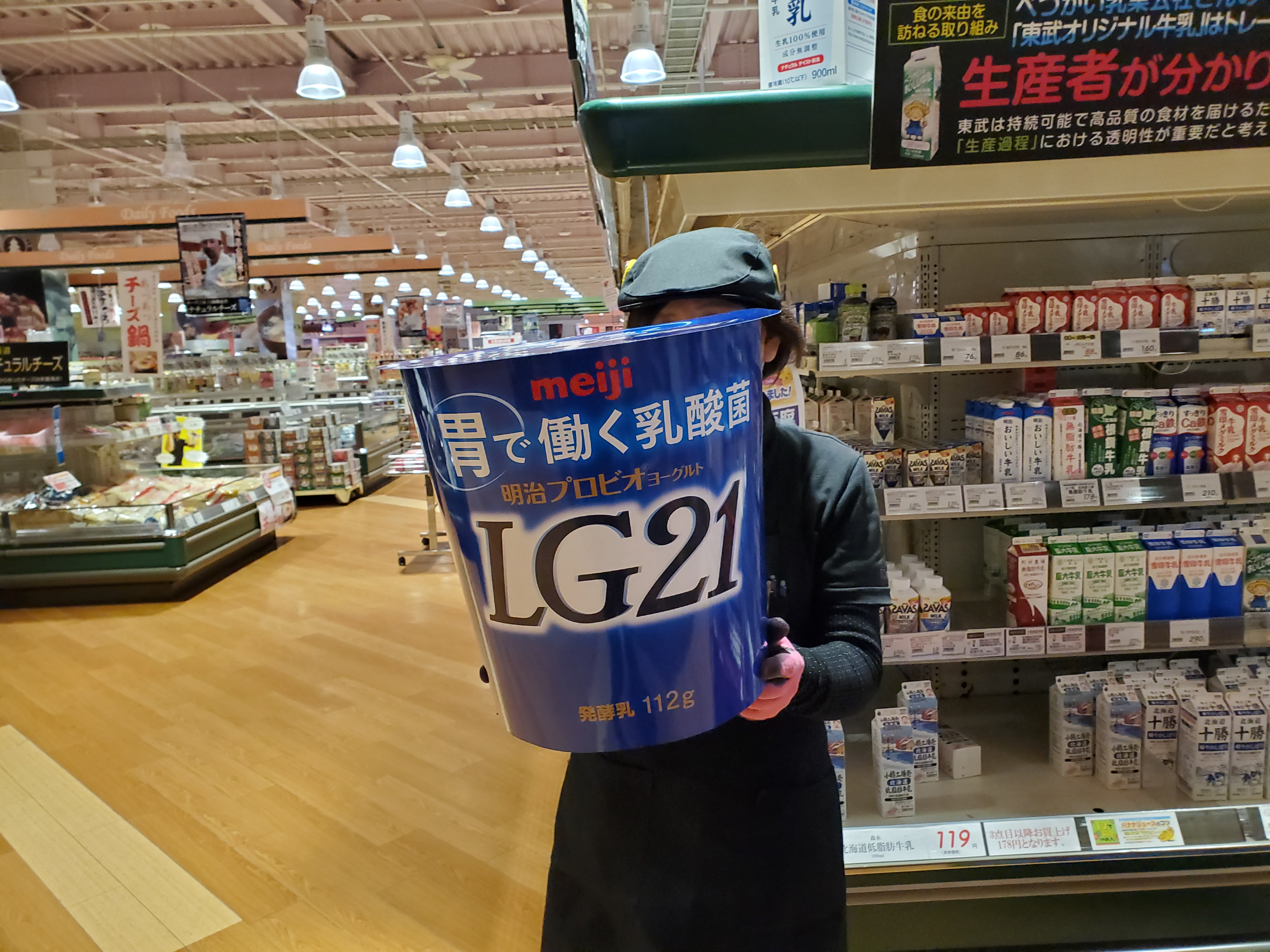 今日オススメの商品はLG21ヨーグルトはいかがですか?乳酸菌は普通胃で死んでしまいますがこちらは腸まで働く乳酸菌で我々の体を守る鍵となるものです。今日は均一祭なので大変お買い得なのでぜひ、美味しくヨーグルトを召し上がってほしいです。ご利用お待ちしております。(^-^)v