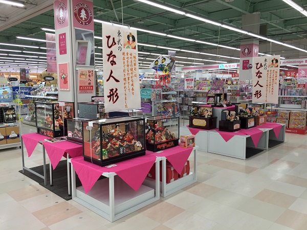 当店では雛人形を展示販売中。