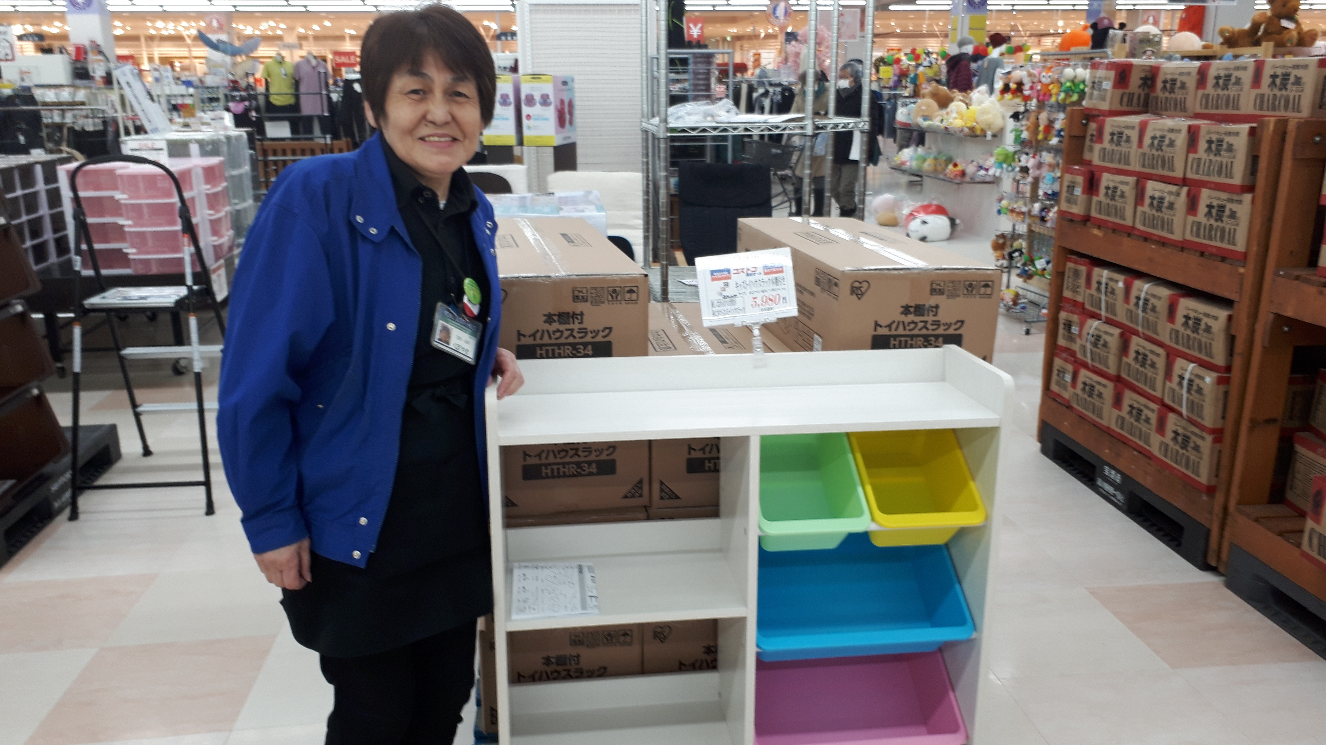寝具インテリアコーナーよりご案内いたします。子供部屋の整理整頓にオススメ、楽しくお片付けの習慣か身に付けられる本棚付きトイハウスラックが入荷しました!ぜひこの機会に当店寝具インテリアコーナーでお買い求めください!