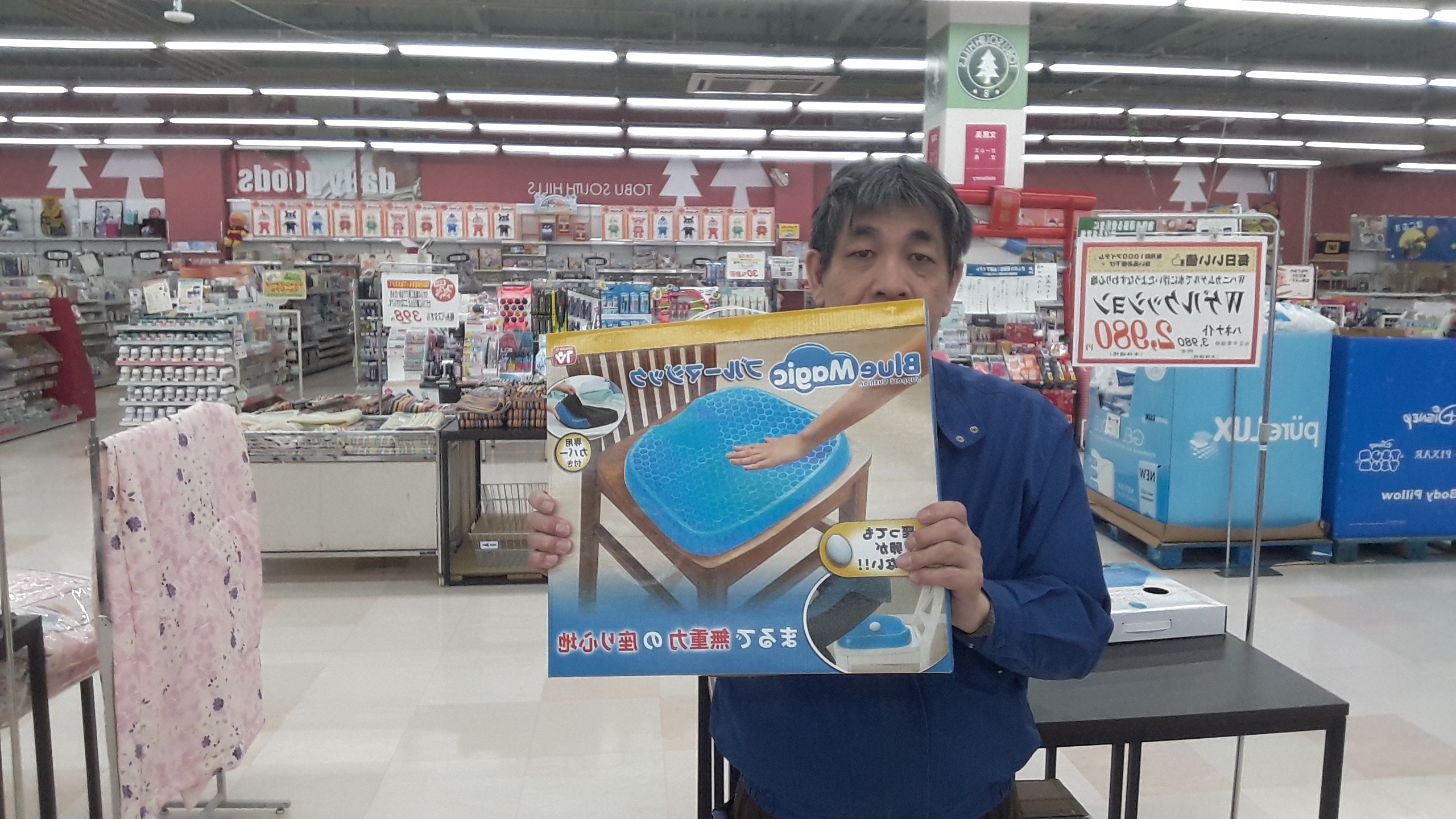寝具インテリアコーナーよりご案内いたします。只今当コーナーではテレビショッピングでもお馴染みのサポートクッションブルーマジックをお取り扱い中!座っても卵が割れない無重力の座り心地!ぜひ当店寝具インテリアコーナーでお買い求めください!