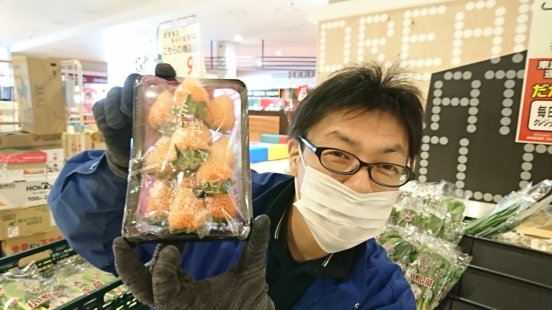 青果担当苫米地より、本日のオススメ商品です。今日ご紹介するのは茨城産の淡雪いちごです。甘くて酸味が穏やか、いちごの風味を楽しめる白いちごです。ほんのり桃色なので明日のひな祭りにはぴったりのいちごではないでしょうか?その他にも茨城から直送で各種いちごが入荷していますので併せてご利用ください。