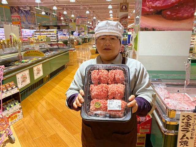 おはようございます、ミートコーナー本日のおすすめ商品は、道内産豚肉生挽肉のメガパックです! ハンバーグや、餃子、そぼろになど用途豊富で、使いたい分だけ使って、あとは冷凍保存にもおすすめな、大容量パックです! こちら1kg入りまして、980円と大特価にて販売しておりますので、どうぞご利用下さいませ!!