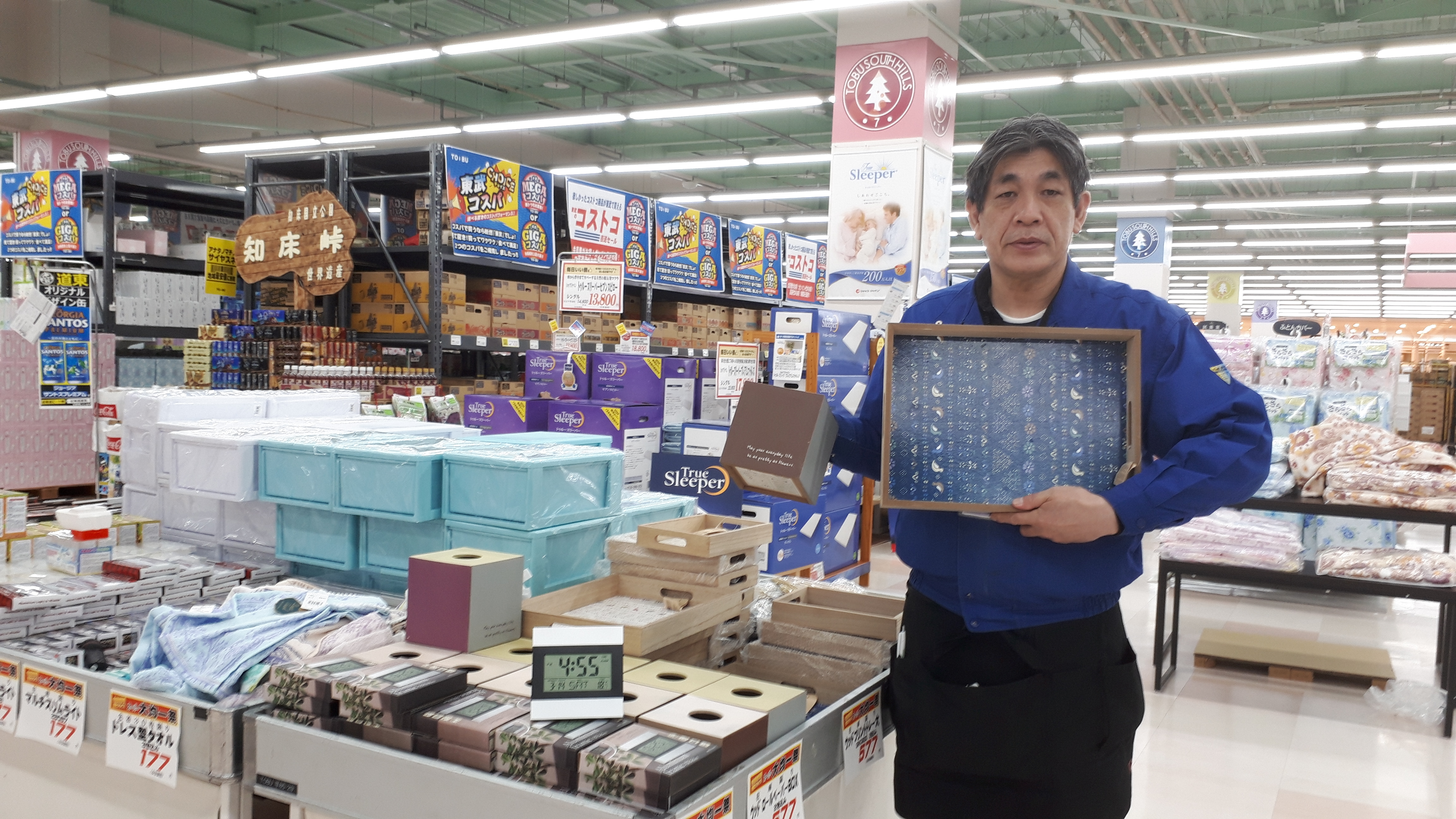 寝具インテリアコーナーよりご案内いたします。本日も引き続きスーパー大均一祭開催!当コーナーではおしゃれなウッドのトレーやインテリアクロック、シリコンラバーミトンなどインテリア商品各種を均一特価でご奉仕中です!ぜひこのお買得な機会に当店寝具インテリアコーナーでお買い求めください!