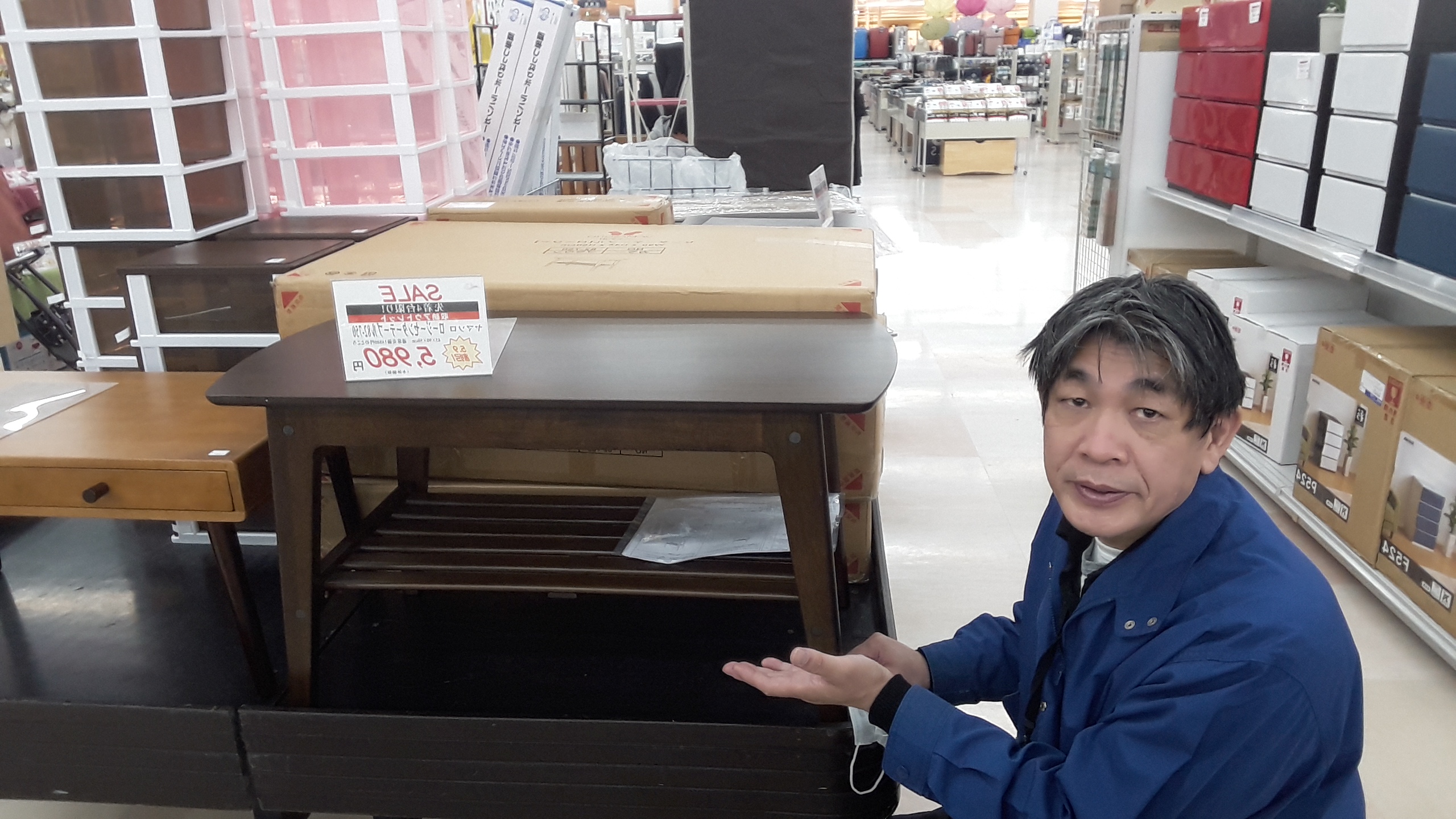 寝具インテリアコーナーよりご案内いたします。只今当コーナーではアウトレットセールといたしましてテーブル各種を激安特価でご奉仕中!サイドテーブルやセンターテーブルがお買得ですのでぜひこの機会に当店寝具インテリアコーナーでお買い求めください!