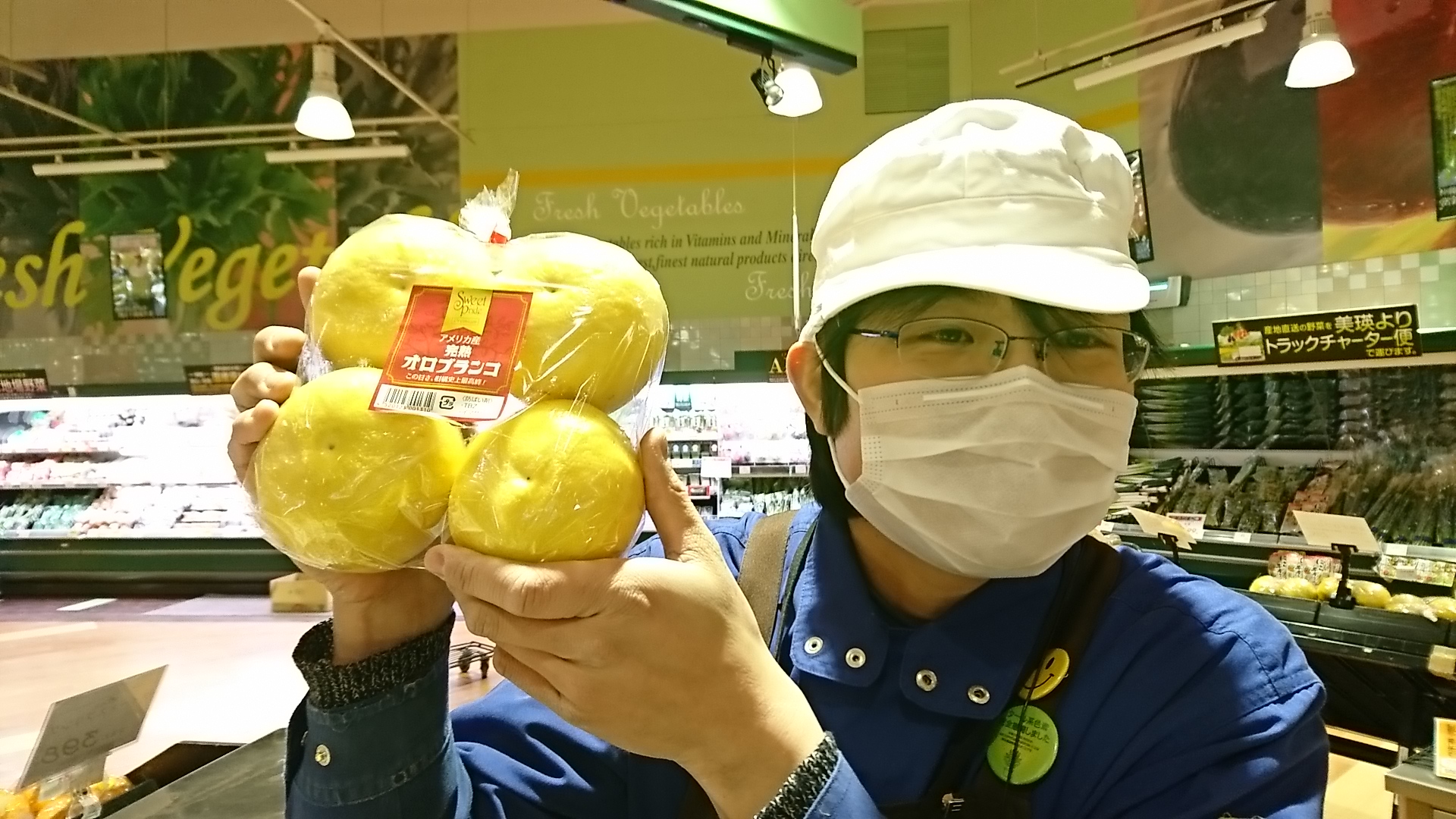 青果担当苫米地より、本日オススメ商品です。今日ご紹介するのはアメリカ産の完熟オロブロンコです。グレープフルーツから生まれたこの柑橘は甘さが強く、苦味と酸味は控えめ。しっかり完熟して甘さがさらに増しています。グレープフルーツが苦手な方にもお勧めしたい美味しい輸入柑橘です。ぜひご利用ください。