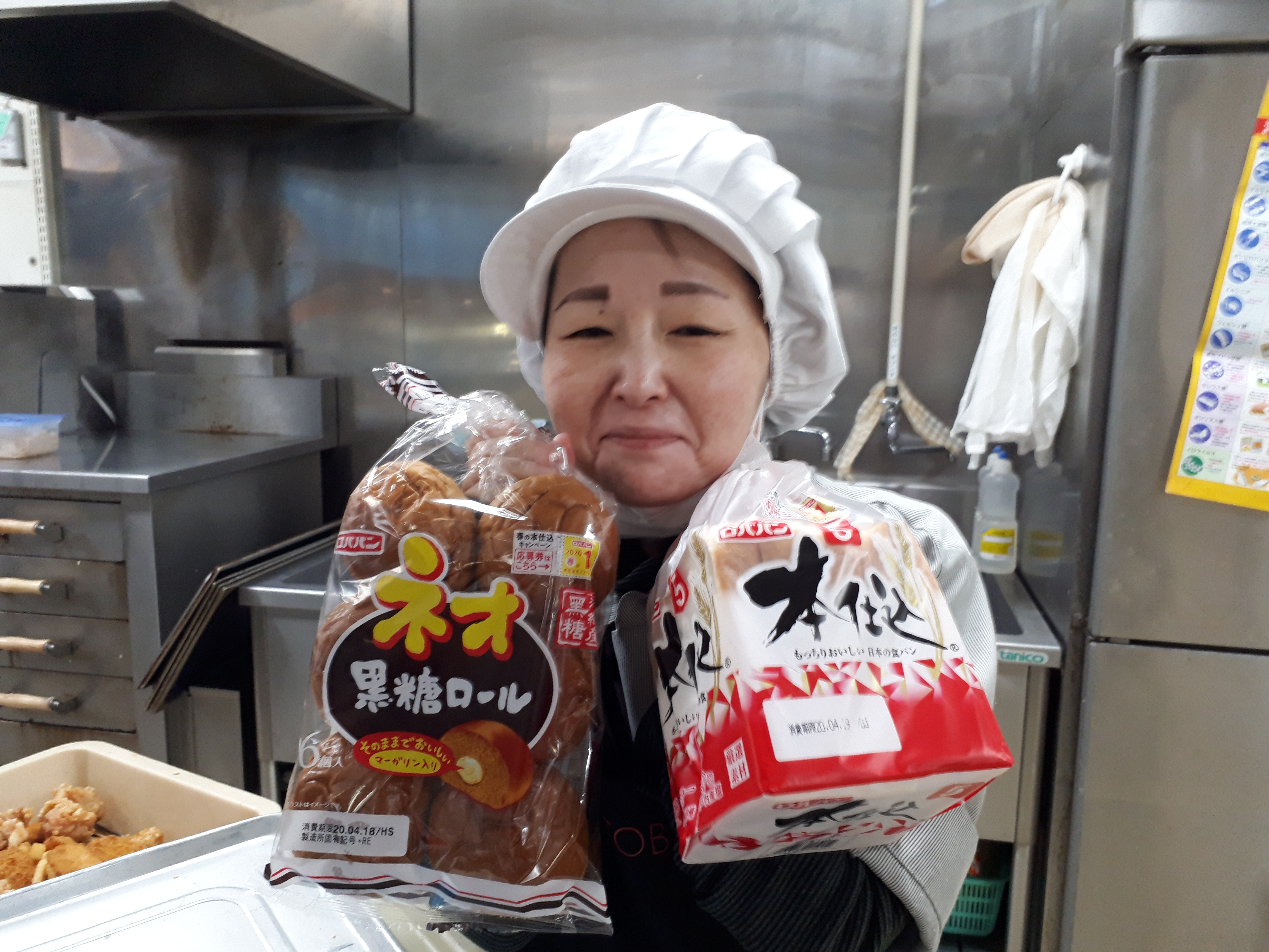 おはようございます。日配コーナーのおすすめは、ロバパン本仕込み。もっちりとした食感のパンです。朝食にいかがですか?ただいまキャンペーン実施中です。ぜひ、ご利用ください!