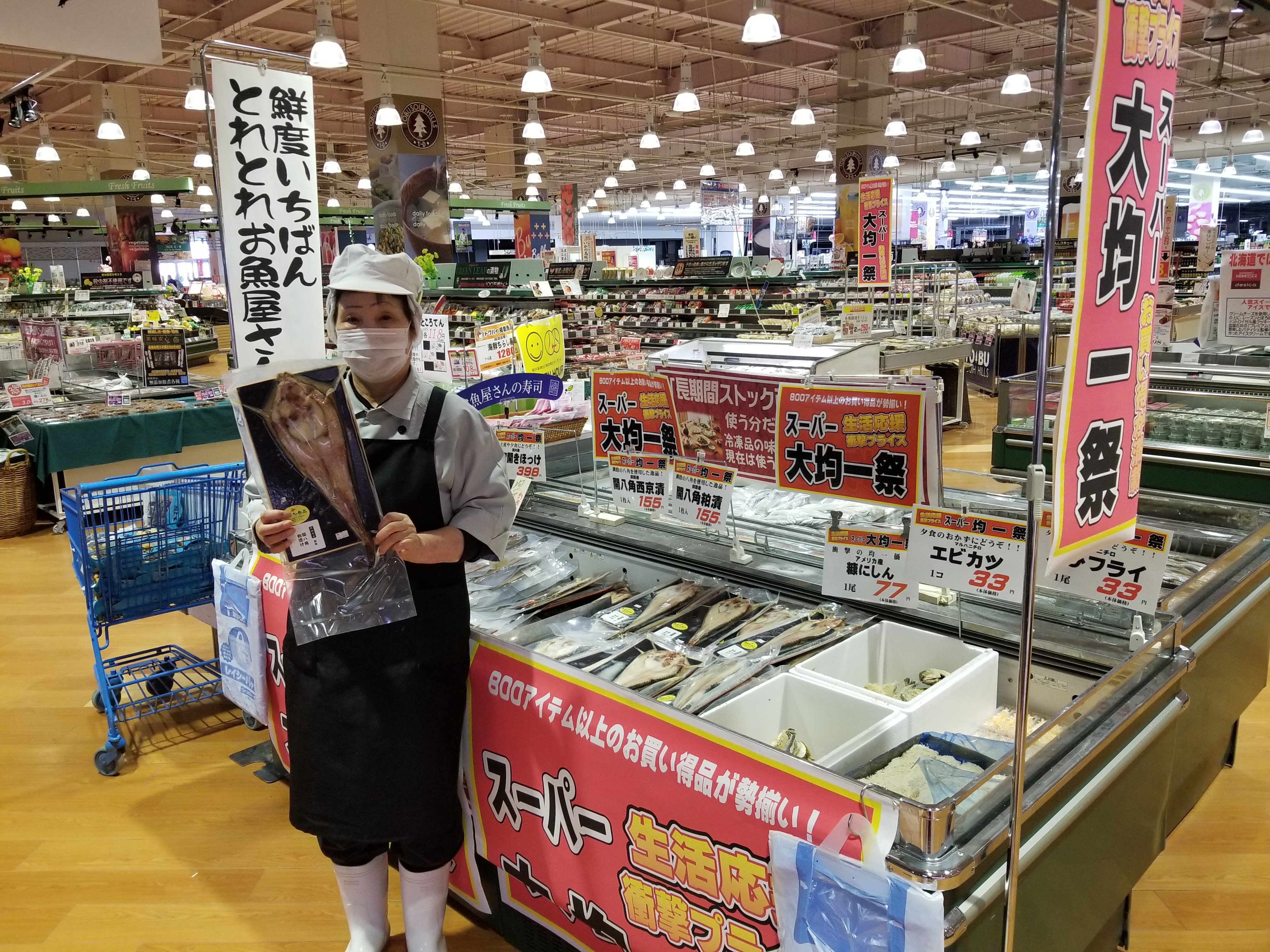 おはようございます。アメリカ産糠ニシン77円、釧路産開八角粕漬け一枚155円、道内産真空開きホッケ一枚398円その他にも33円など品数を揃えてお待ちしています。