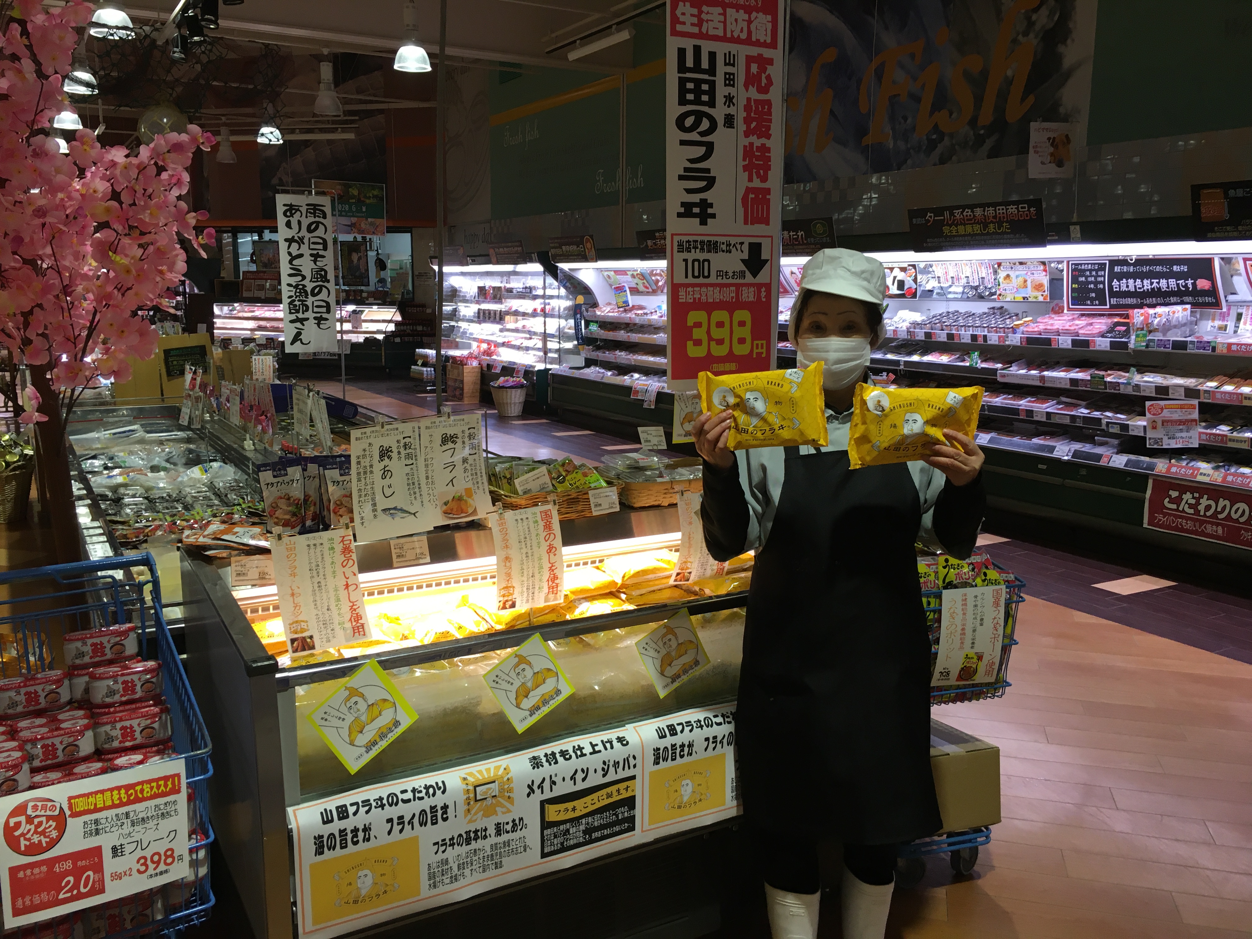 おはようございます。今日は、山田のフラヰをご紹介!フライのイがヰですよ!ここがまずびっくりですね〜^_^味もあじフライ、いわしフライ、いわしチーズの3種類あり、どれも1袋398円とお買い得なんです!国産原料にこだわっており、安心安全はもちろんですが、揚げてから冷凍しているため調理も簡単!レンジで1分20秒温めて、レンジから取り出して1分ほど休ませると水分がとびサクサクになるというすごい商品!ぜひ、ご利用下さい。