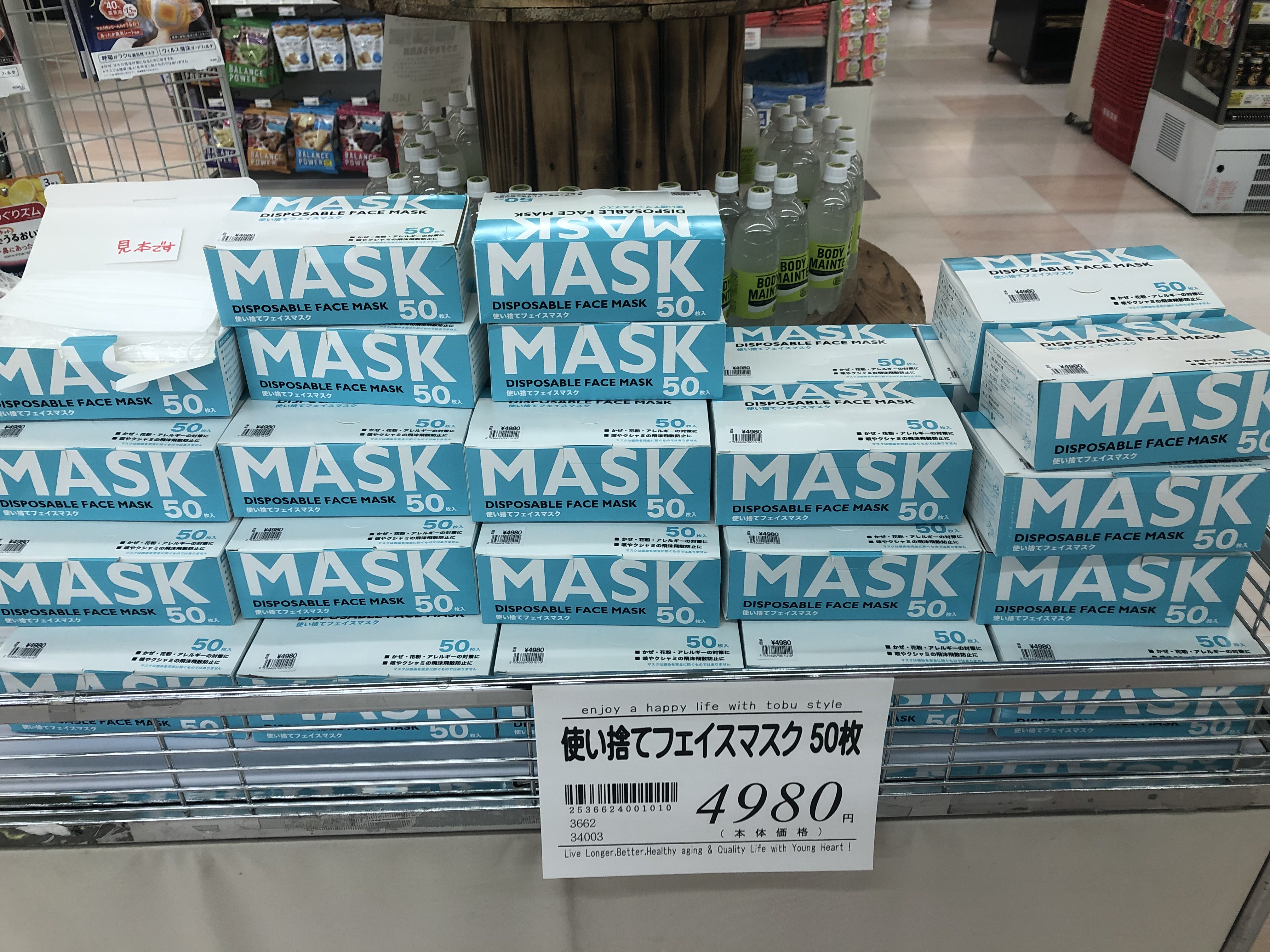 みなさんこんにちは!ドラッグコーナー本日は「使い捨てフェイスマスク」が入荷いたいました!まだまだ入手が困難なマスク、必需品ですよね!気になる方はお早めにお求めくださいね!