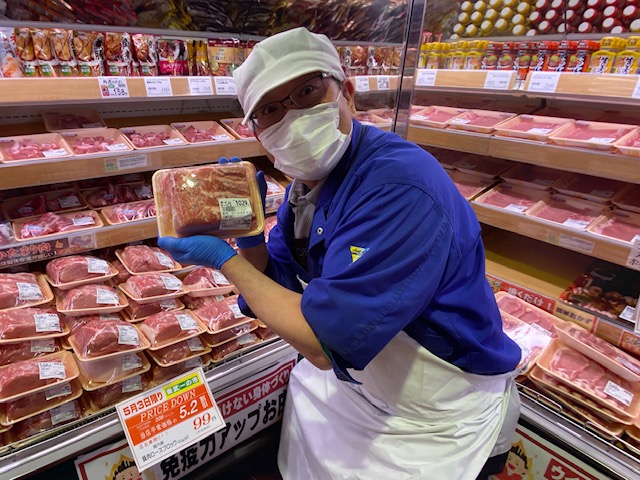 おはようございます、ミートコーナー本日のおすすめ商品は、道内産豚肉ロースブロックです!! 最高級部位で、きめが細かく柔らかいのが特徴で、お好みのサイズでステーキやカツなどにおすすめです! こちら、100g当り通常の半額の99円の大特価にて販売致しておりますので、どうぞご利用下さいませ!