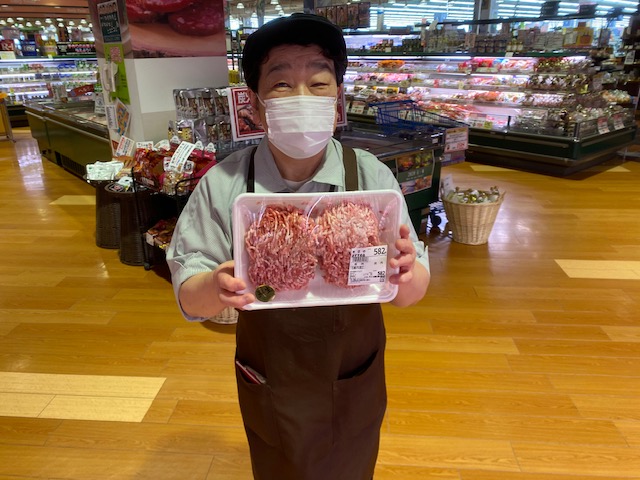 おはようございます、ミートコーナー本日のおすすめ商品は、道内産豚肉生挽肉のメガパックです! ハンバーグや、餃子、そぼろになど用途豊富で、使いたい分だけ使って、あとは冷凍保存にもおすすめな、大容量パックです! こちら1kg入りまして、95円と大特価にて販売しておりますので、どうぞご利用下さいませ!!