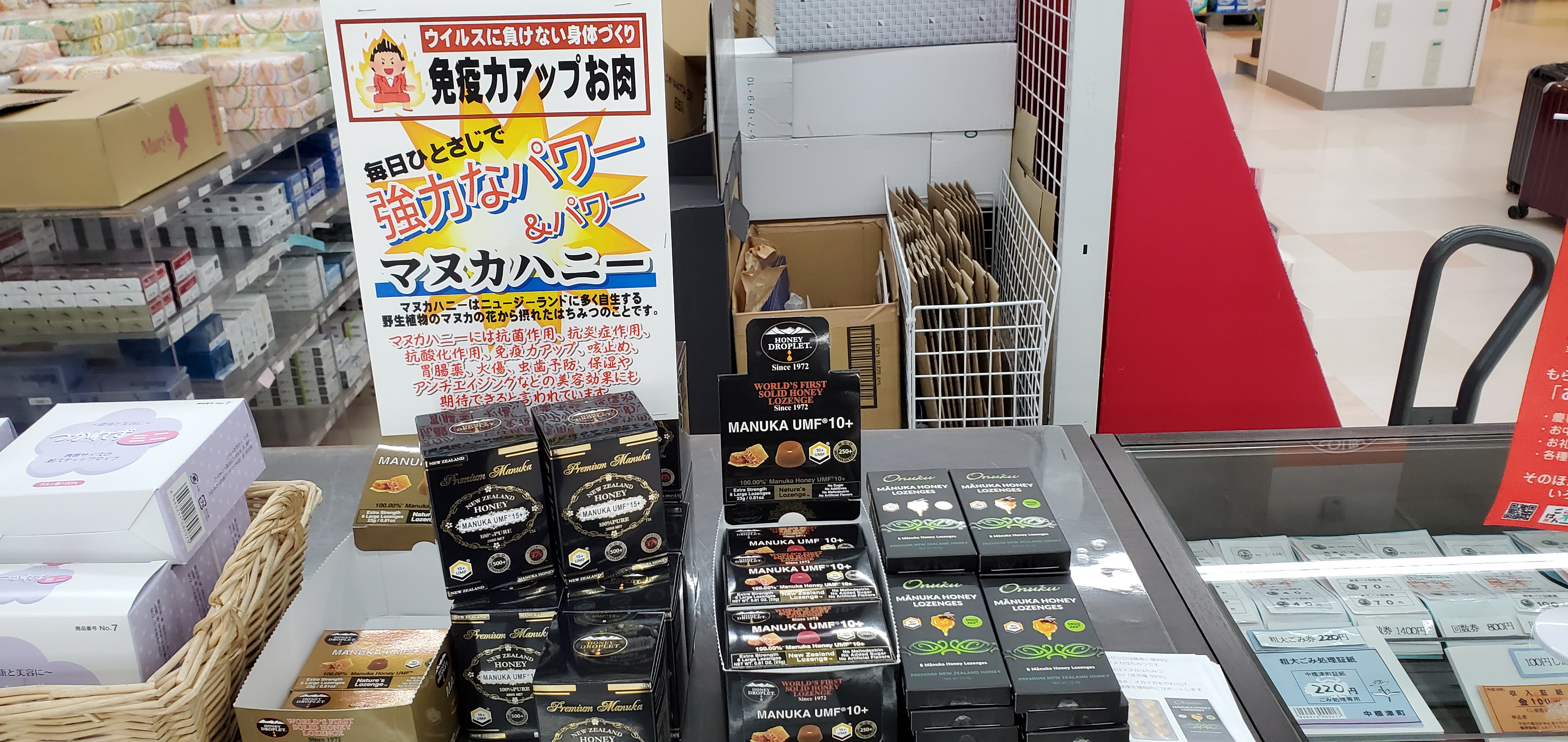 今だから注目する免疫力アップする効果のある商品は色々あります。話題のオススメなのがマヌカハニーのハチミツです。マヌカって言う植物の花の蜜で作られたハチミツの中でも一番効果が期待され、当店でも高いけど売れているのでお試ししてない方でも興味のある方は一度ご利用くださいね!(^-^)v