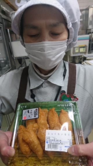 おはようございます。お惣菜コーナーではいなり寿司を販売。上品な味わいのいなりの皮を使用。均一祭といたしまして8個入り377円と、お買い得に販売中。ぜひご利用ください。