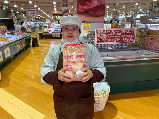 おはようございます、ミートコーナー本日のおすすめ商品は、業務用若鶏むね肉です! チキンカツや蒸し鶏、バンバンジーなど用途が豊富で、2kg入ったお得用パックです! こちら、899円にて販売しておりますので、どうぞご利用くださいませ!!