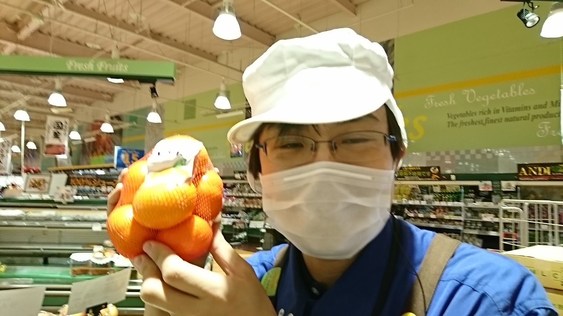 青果担当苫米地より、本日のオススメ商品です。今日ご紹介するのはオーストラリア産のみかん?です。見た目はみかんのようですが、マーコットというオレンジです。みかんのように簡単に皮がむけて食べやすいオレンジです、ぜひご利用ください。