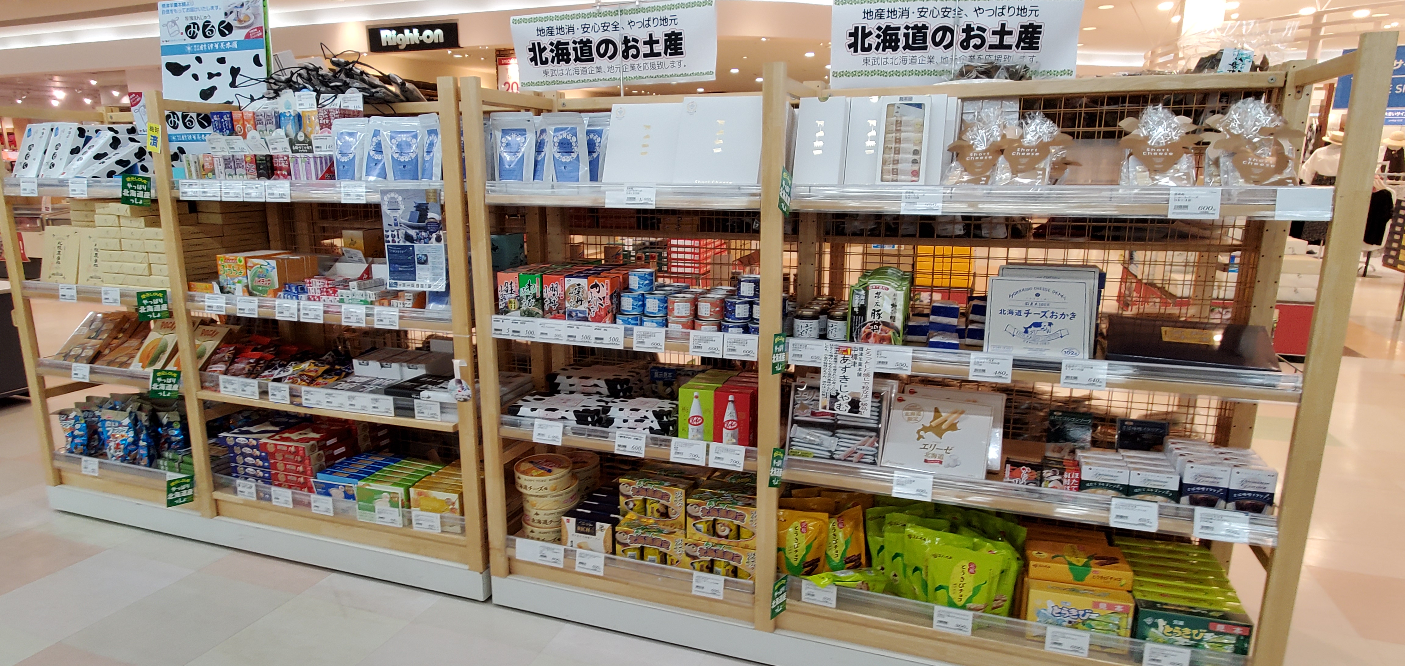観光やレジャーなどに北海道の名産のお土産コーナーをご利用ください。お菓子を中心にレトルト、調味料、乾物など様々な道産品がございます。ご来店お待ちしております。(^o^)/