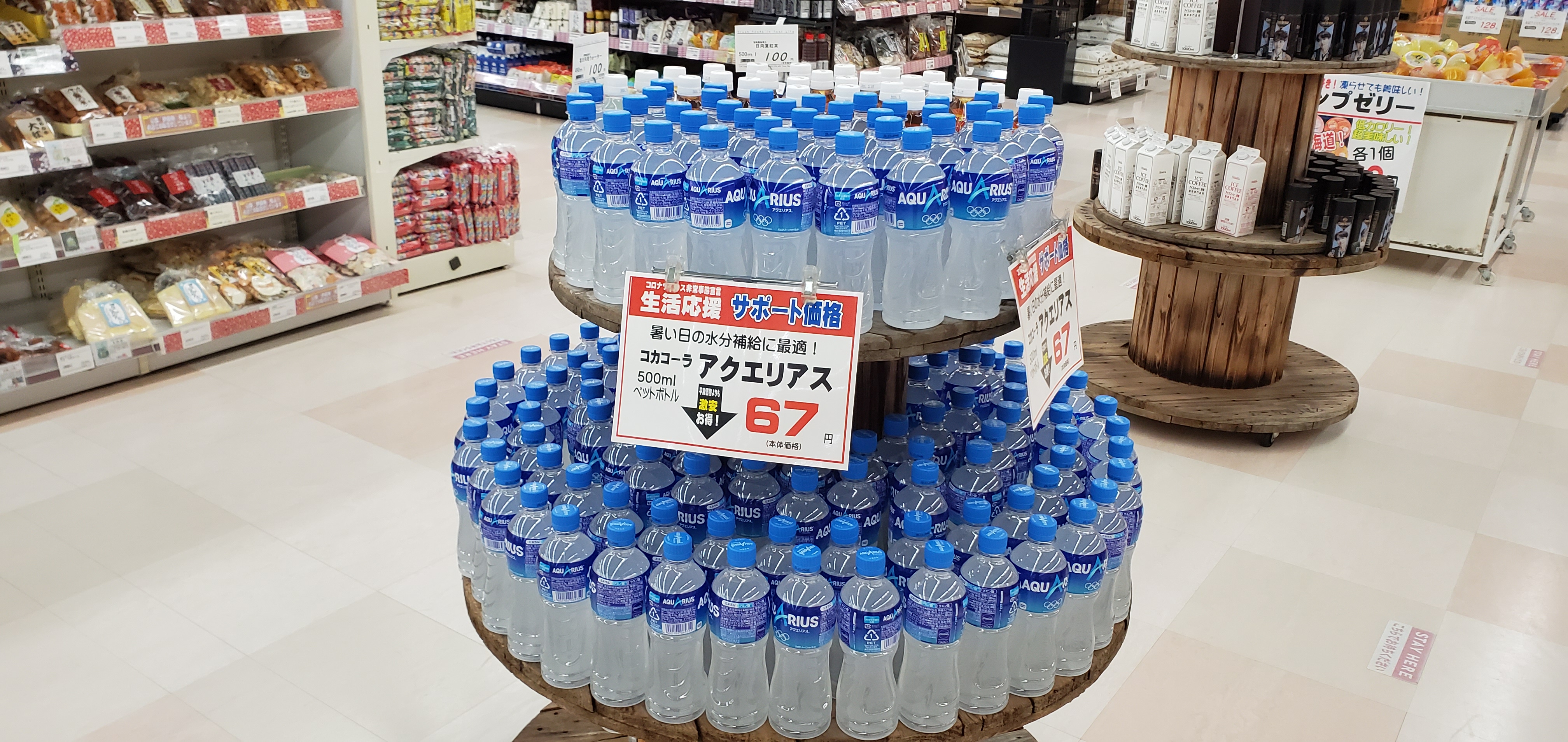 東武はチラシを出していませんが、その経費を利用してコロナに負けないためのみなさまの応援に生活応援サポート価格でご提案いたします。今日オススメは最近暑い日が続いたりして、さらにマスク着用で熱中症予防の対策アクエリアスはいかがですか?この時期に今月は価格も出来るだけ安くしてご提案いたします。こまめに水分補給してくださいね!ご利用お待ちしております。