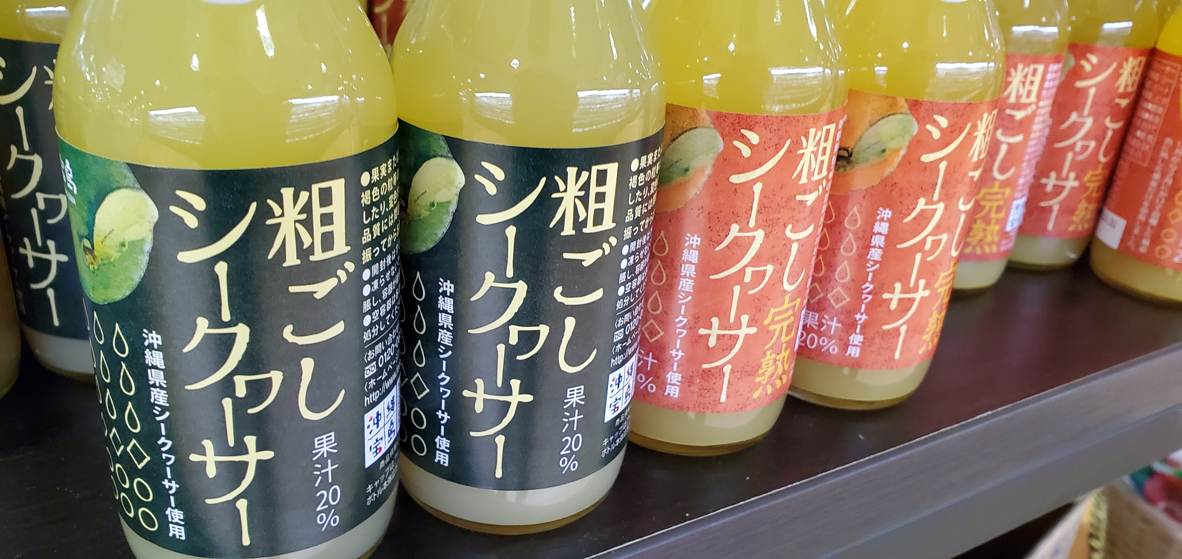 食料品から沖縄フェアを現在限定販売中です。こちらのシークヮーサージュースやお菓子など集め販売してますのでご利用お待ちしております。(^o^)/