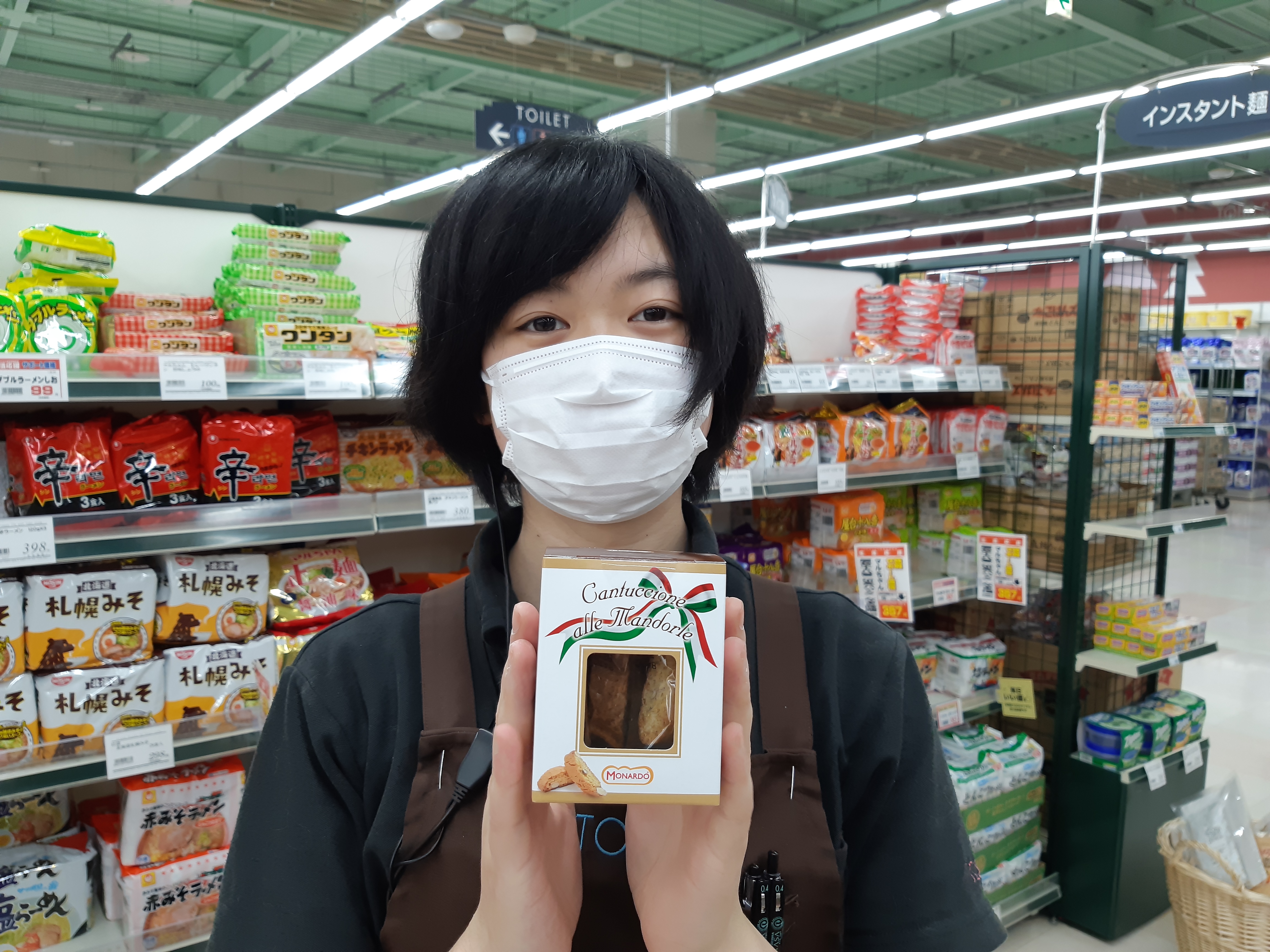 本日、食品担当、船木のオススメはイタリア産アーモンドクッキーがイチオシです、しっかりした歯ごたえで、素朴な美味しさトスカーナ地方の伝統菓子コーヒーに浸して食べるのがイタリア流です通常価格398円の品、99円で販売中数量限定ですので、お早めに、、