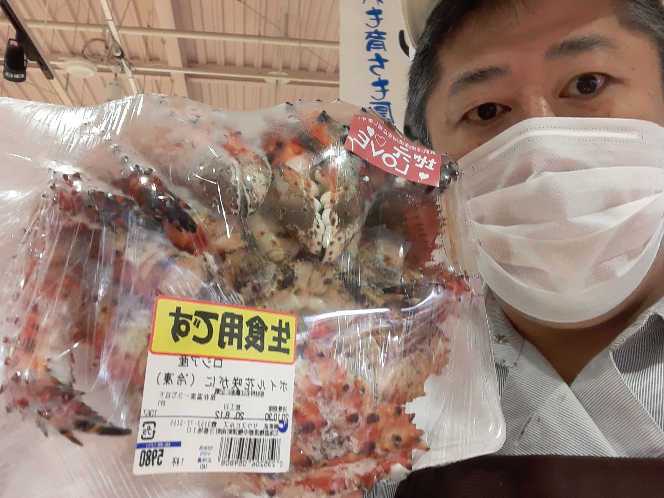 おはようございます。本日のおすすめ商品!ロシア産冷凍ボイル花咲がに約1キロで5980円とお買い得!そのまま解凍して食べても良し、BBQで焼いても良しといろいろと美味しい今が旬のカニです!是非とも鮮魚コーナーでお待ちしています!