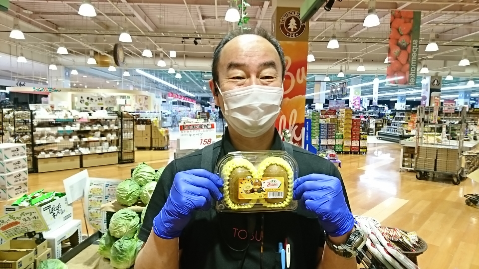 青果担当苫米地より、本日のオススメ商品です。今日ご紹介するのはニュージーランド産のゴールドキウイです。ビタミン、ミネラルが豊富なゴールドキウイは酸味が少なく甘味が強いのが特注。年々人気上昇中のキウイフルーツ、ぜひ毎日の朝食のお供にご利用ください。