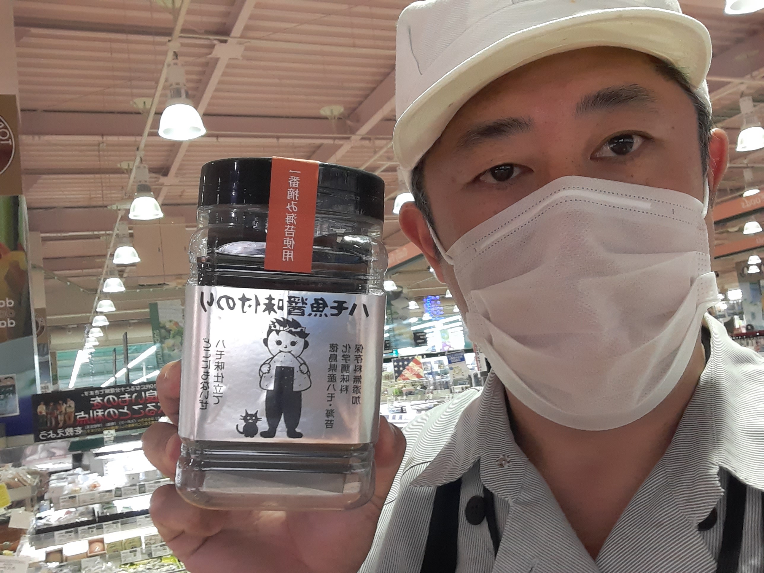 おはようございます。本日はハモ味仕立てのハモ魚醤味付けのりのご紹介です。8切64枚入り(板のり8枚分)ご飯のお供、おむすびにも合う、そのまま食べても良しととても美味しい味付けのりです。お値段は698円です。是非ともお試しください!本日も鮮魚コーナーでお待ちしています。