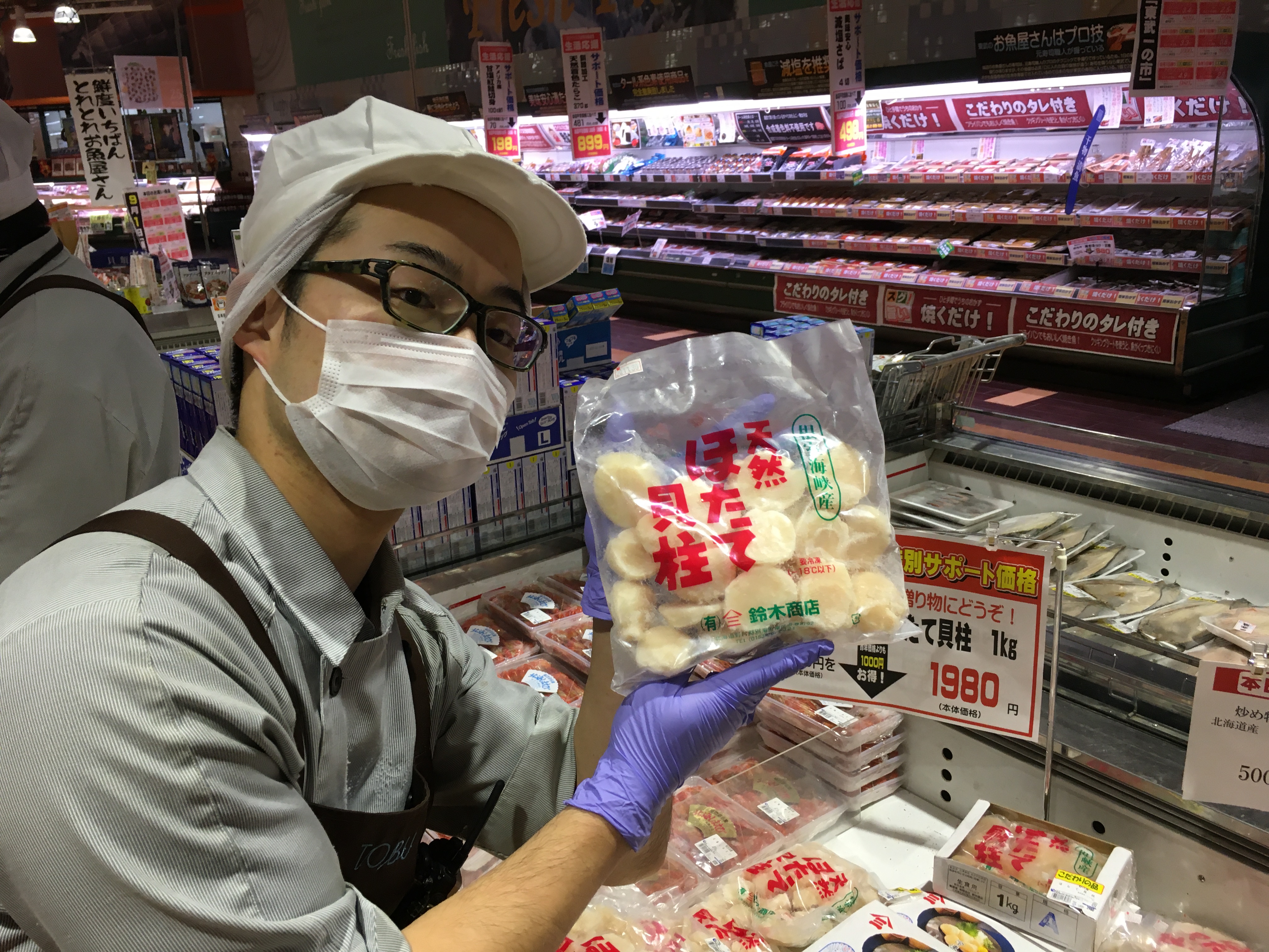 おはようございます。今日のイチオシはほたて!炒め物やグラタン、シチューに最適です。ぜひ、ご利用下さい。
