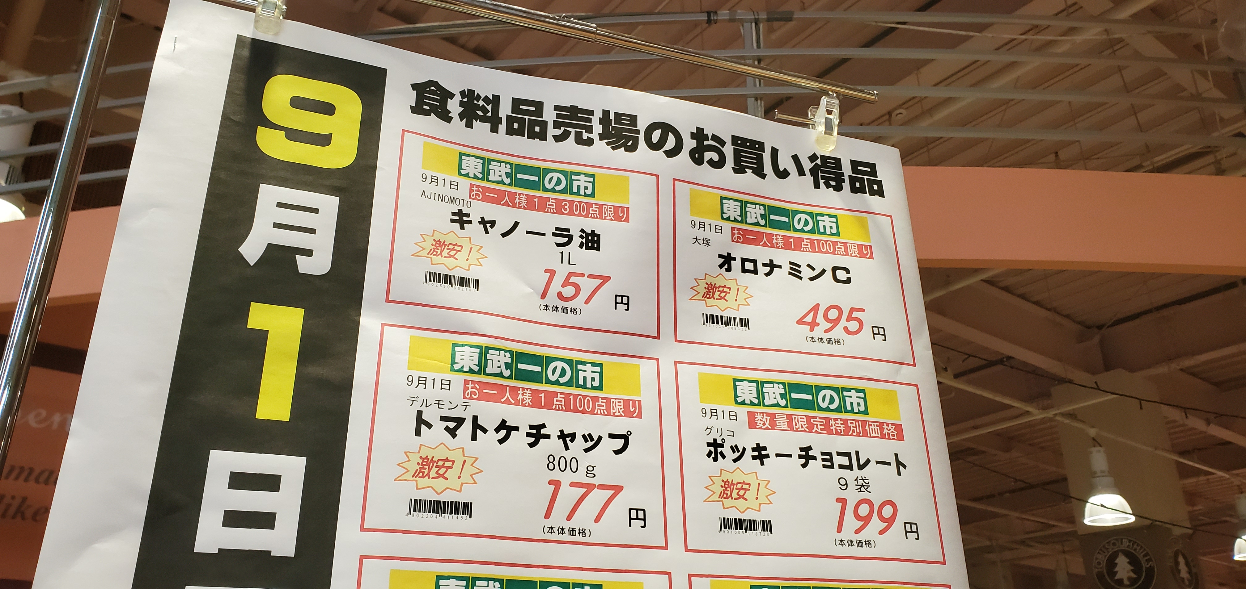 今日は毎月はじめの一の市です。キャノーラ油やオロナミンC、おーいお茶やお菓子、カップラーメンなどなど色々と一の市特別価格でご紹介しています。ぜひ、ご利用お待ちしております。(^o^)/