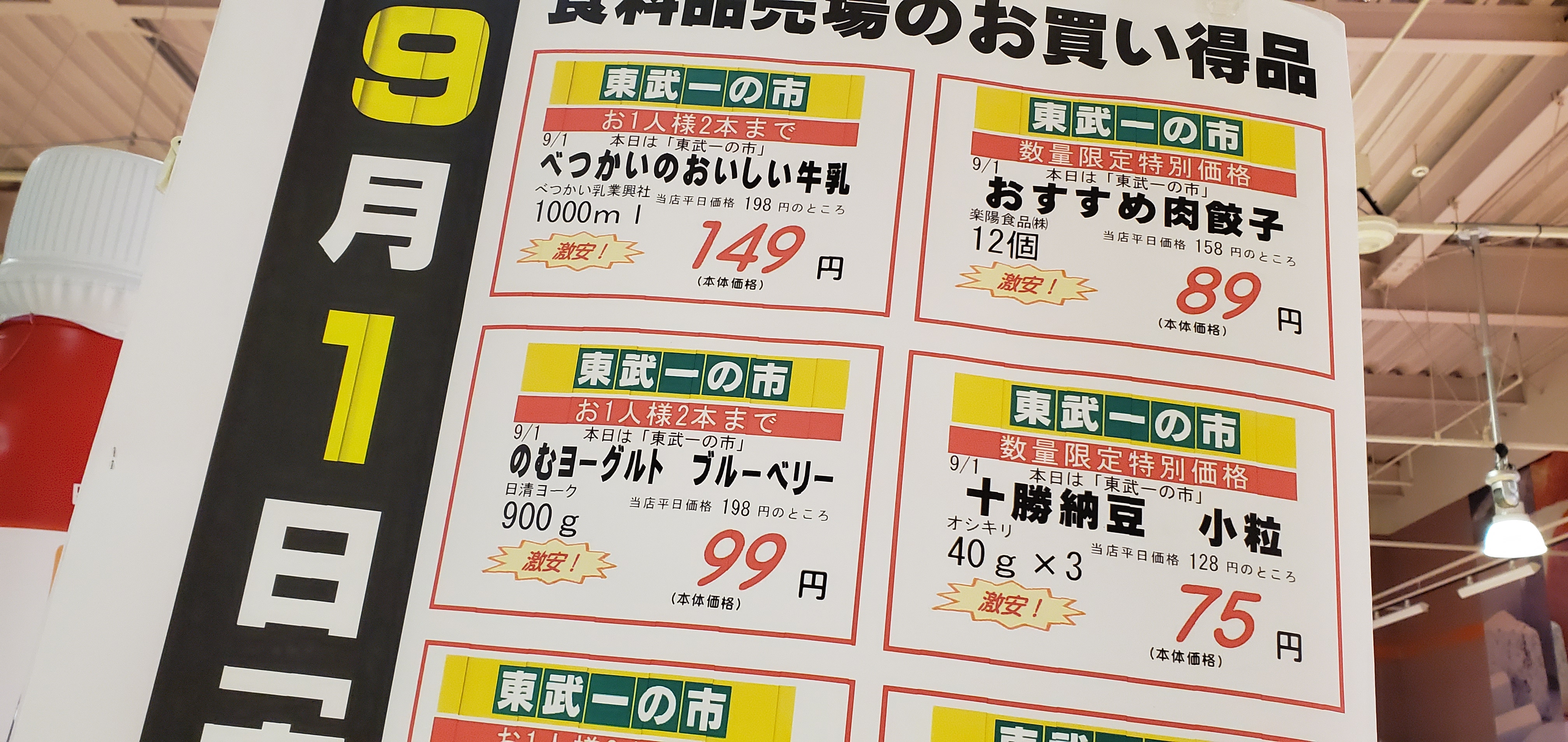 今日は一の市です。こちらのオススメは餃子納豆をはじめ、飲むヨーグルトや牛乳、タマゴなど一の市盛りだくさんで特別価格!みなさんを応援、サポートします。ぜひ、今日ご利用お待ちしております。(^o^)/