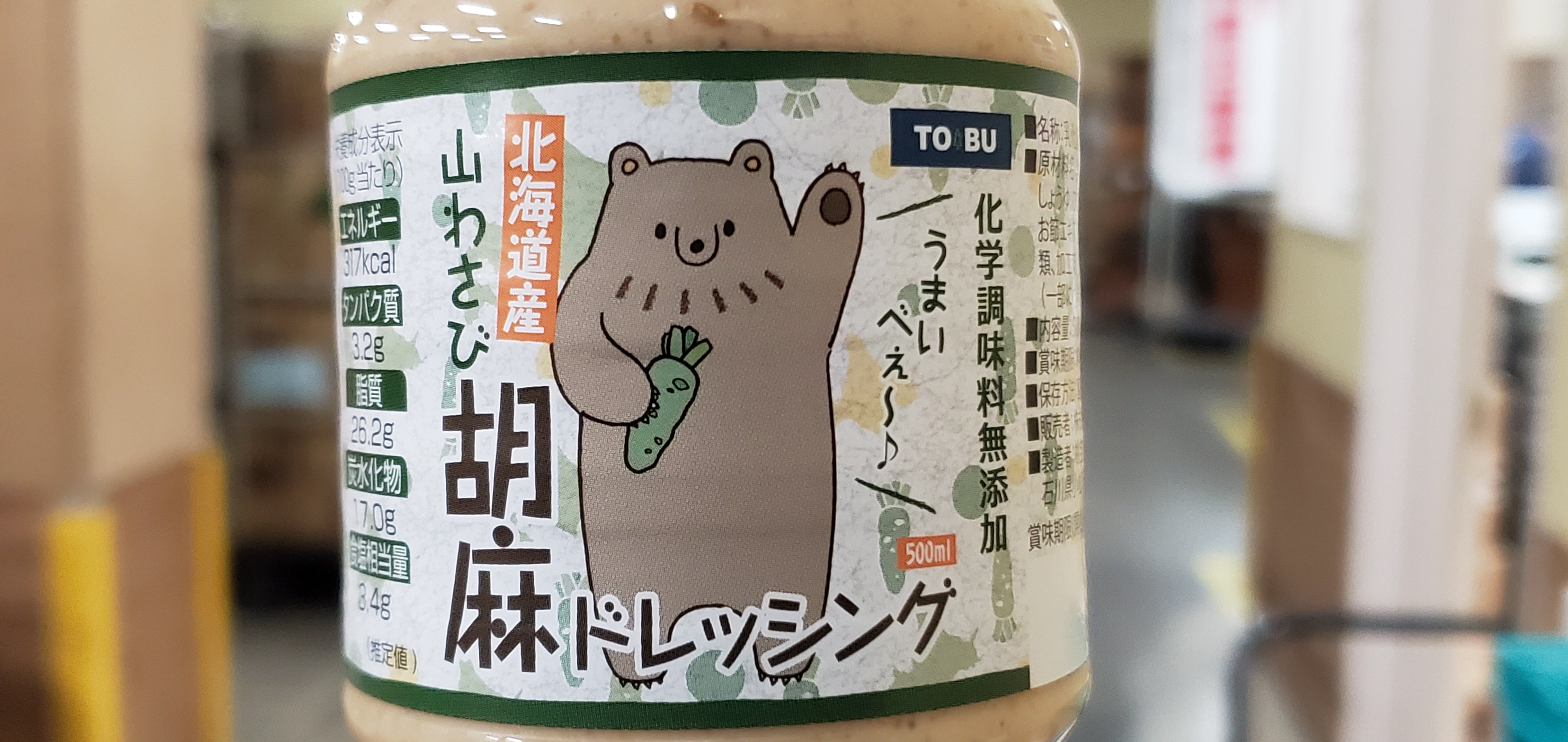 北海道産の山わさびをふんだんに使った胡麻ドレッシングです。ゴマの香りと山わさびの辛さが絶妙で人気があります。お試しになってない方は新しく入荷して販売中なのでぜひこの機会に、サラダやパスタ、揚げ物など料理にアレンジしてみてください。ご利用お待ちしております。(^_-)-☆