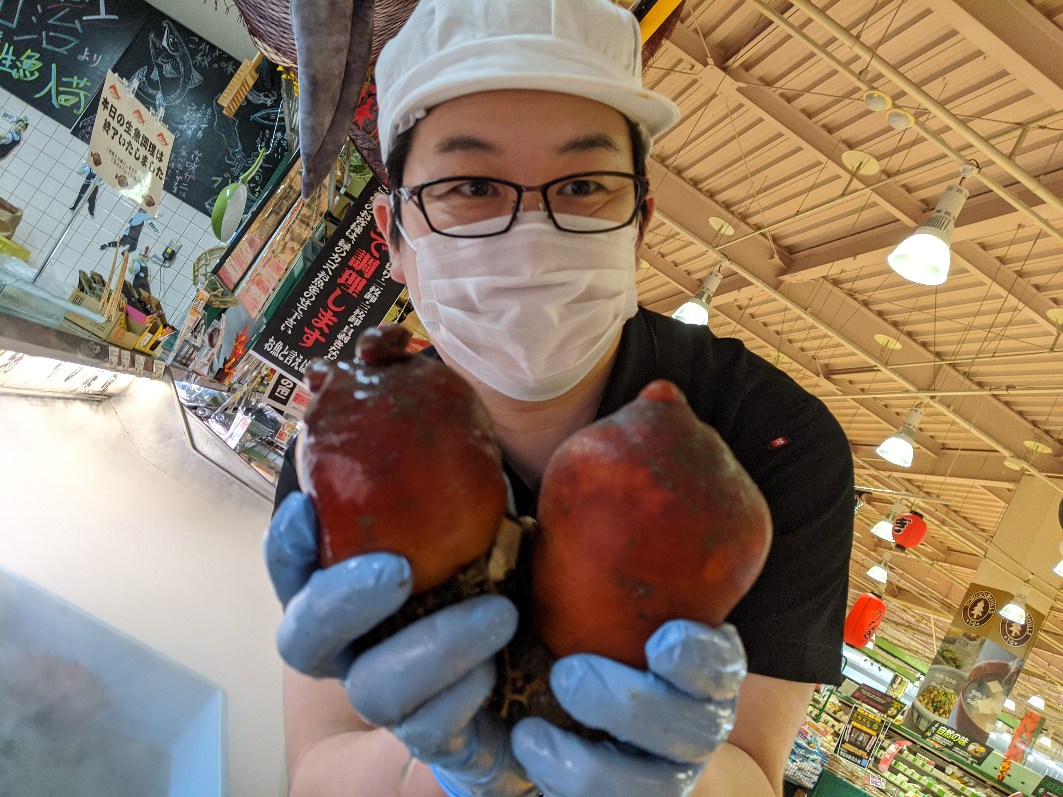 本日は日曜1の市開催中!お買い得商品盛りだくさんですよ!こちらのホヤはなんと100円を切って98円での販売です!是非ご利用くださいませ!