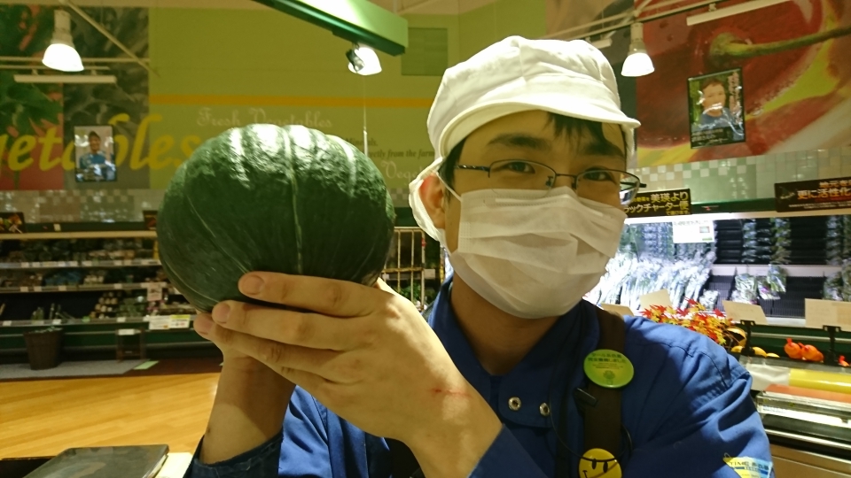 青果担当苫米地より、本日のオススメ商品です。今日ご紹介するのは北見産のダークホースかぼちゃです。こちらの特徴はホクホクと甘い品種となっています。1玉298円と大変お買い得になっていますのでぜひご利用ください。