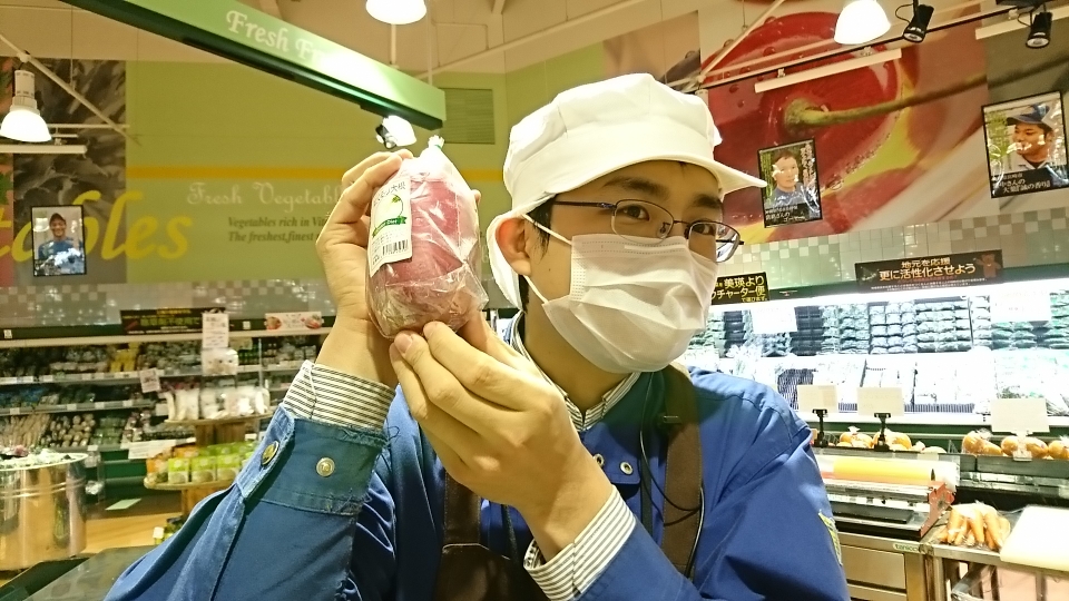 青果担当苫米地より、本日のオススメ商品です。今日ご紹介するのは北海道産の紅くるり大根です。皮だけでなく、仲まで真っ赤な大根です。サラダや大根おろし、酢漬けなどにすると綺麗な赤色を楽しむことが出来ます。その他にもちょっとかわった大根が入荷しました。ぜひご利用ください。
