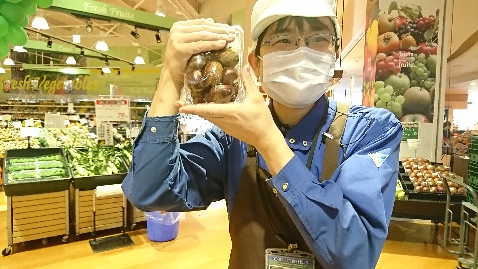青果担当苫米地より、本日のオススメ商品です。今日ご紹介するのは茨城県産の生栗です。秋の味覚と言えばこれ!そのまま茹でて食べてもよし、栗ご飯や渋皮煮にするもよし。生の栗が出回るのはこの時期だけですのでぜひご利用ください。