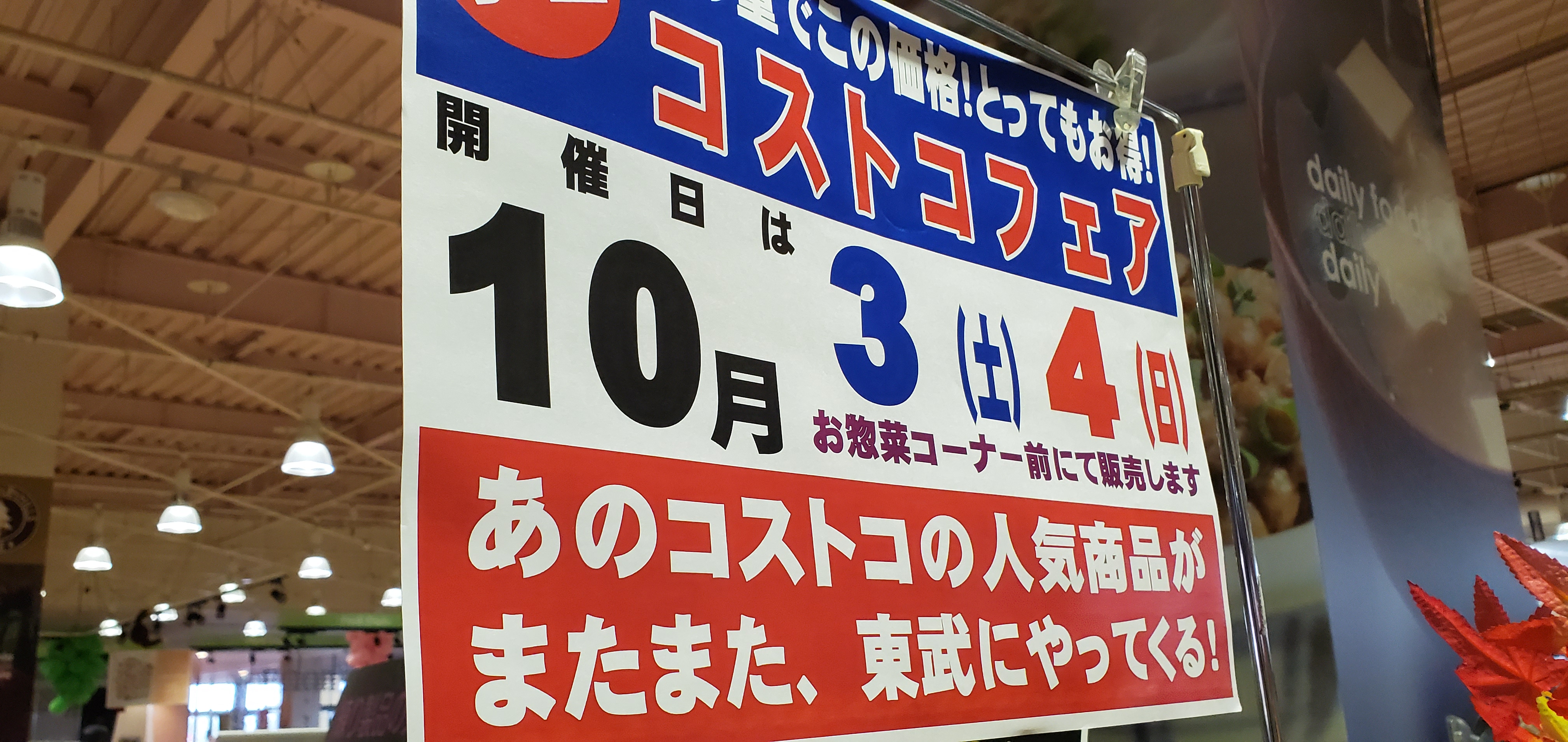 今週土日はコストコフェアです。ディナーロールやトリプルチーズタルト、マフィン、ベーグルなどコストコ人気商品が二日間数量限定で東武で買えます!ぜひ、ご利用お待ちしております。(^o^)/
