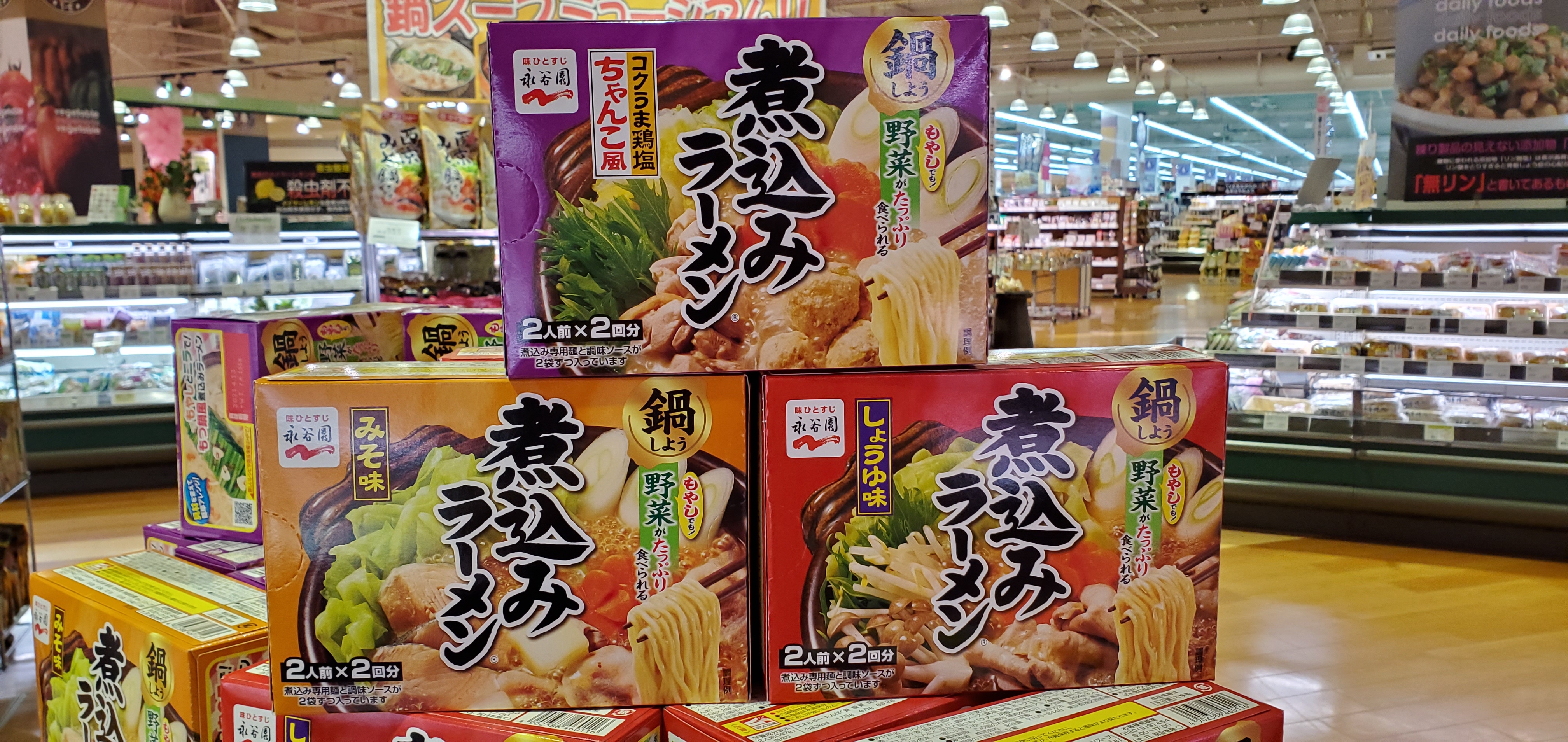永谷園から煮込みラーメンをご紹介!この箱ひとつで4人前もでき、お好みの野菜やお肉、お魚を加えることで栄養バランスもとれると思います。個食鍋でも大きい鍋で家族団らんで作ってもいいと思います。ぜひご利用お待ちしております。(^^)/