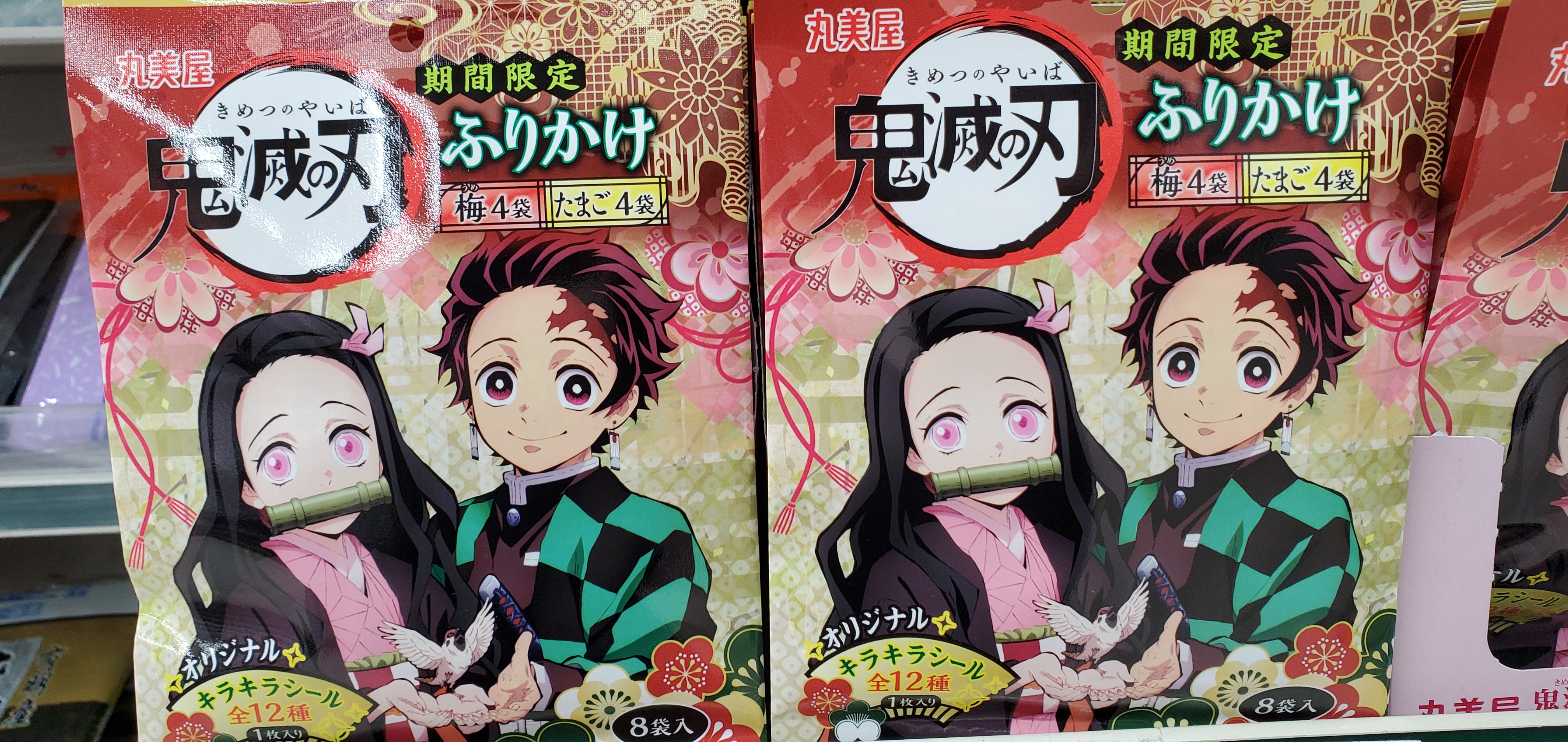 今人気の鬼滅の刃から期間限定のふりかけが発売中です。梅とたまご、鮭とたまごのセットがあり付属でキラキラシールが12種類のうちいずれかが入っています。今のうちにお買い求めくださいね。ご利用お待ちしております。(^o^)/