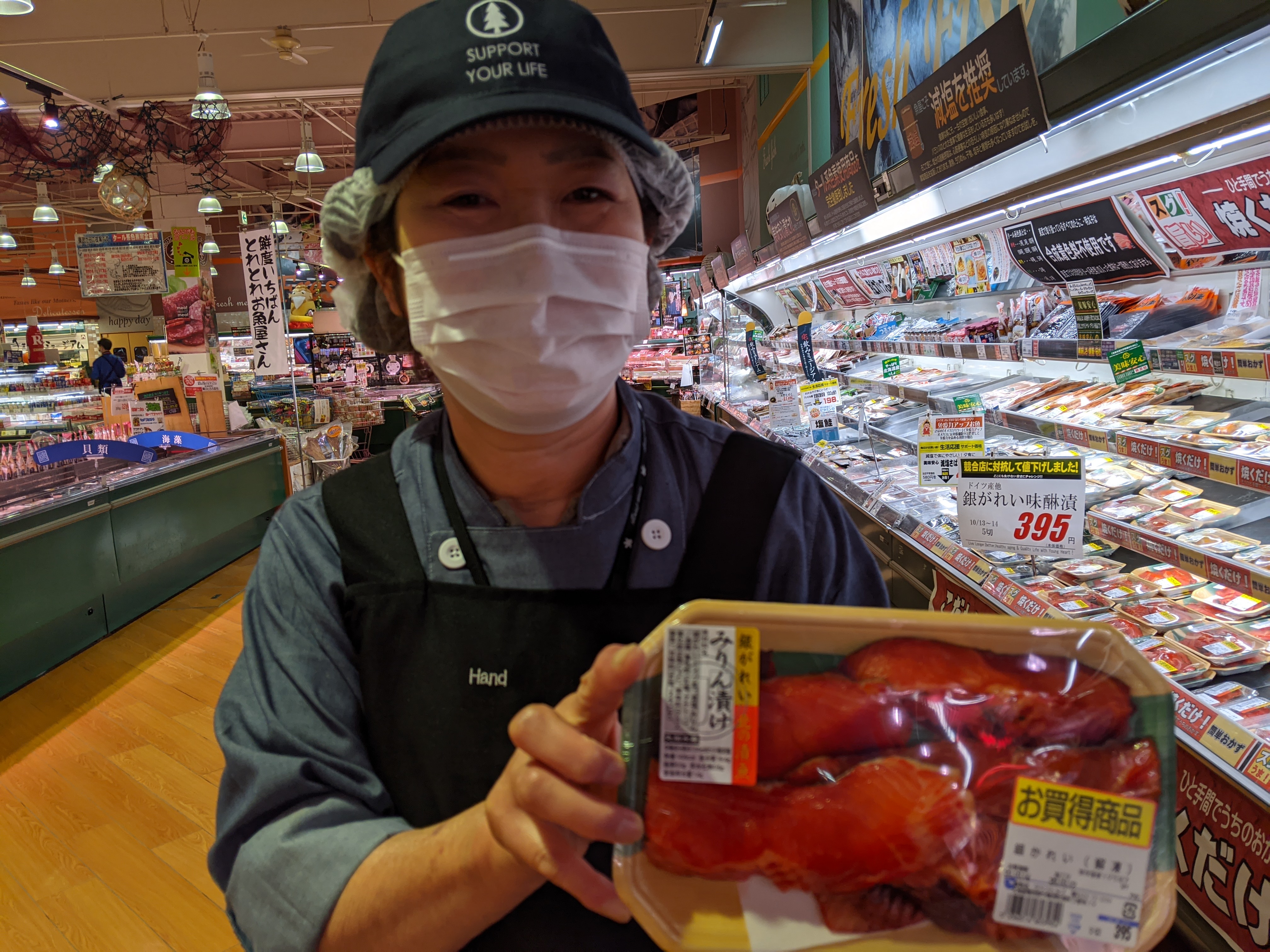 鮮魚コーナーでは銀かれいみりんお買い得!5切れも入りまして395円となっていますよ!是非ご利用くださいませ