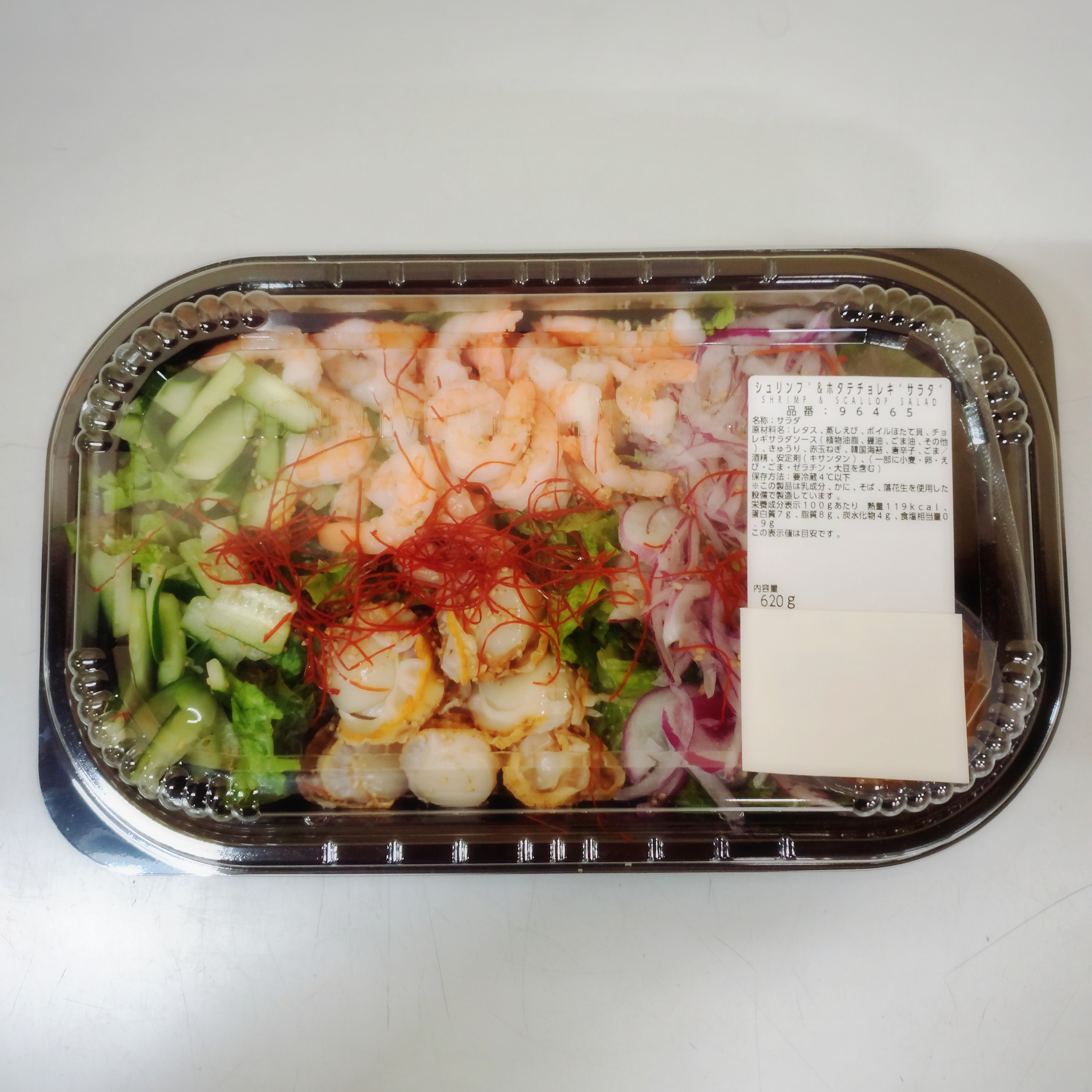 今日オススメは、シュリンプ&ホタテチョレギサラダです。たっぷりのエビとホタテが入ったサラダで専用ソース付き。このままで調理できますが最近はアレンジされる方もいますね!数に限りありますのでお早めにご利用お待ちしております。(^o^)/