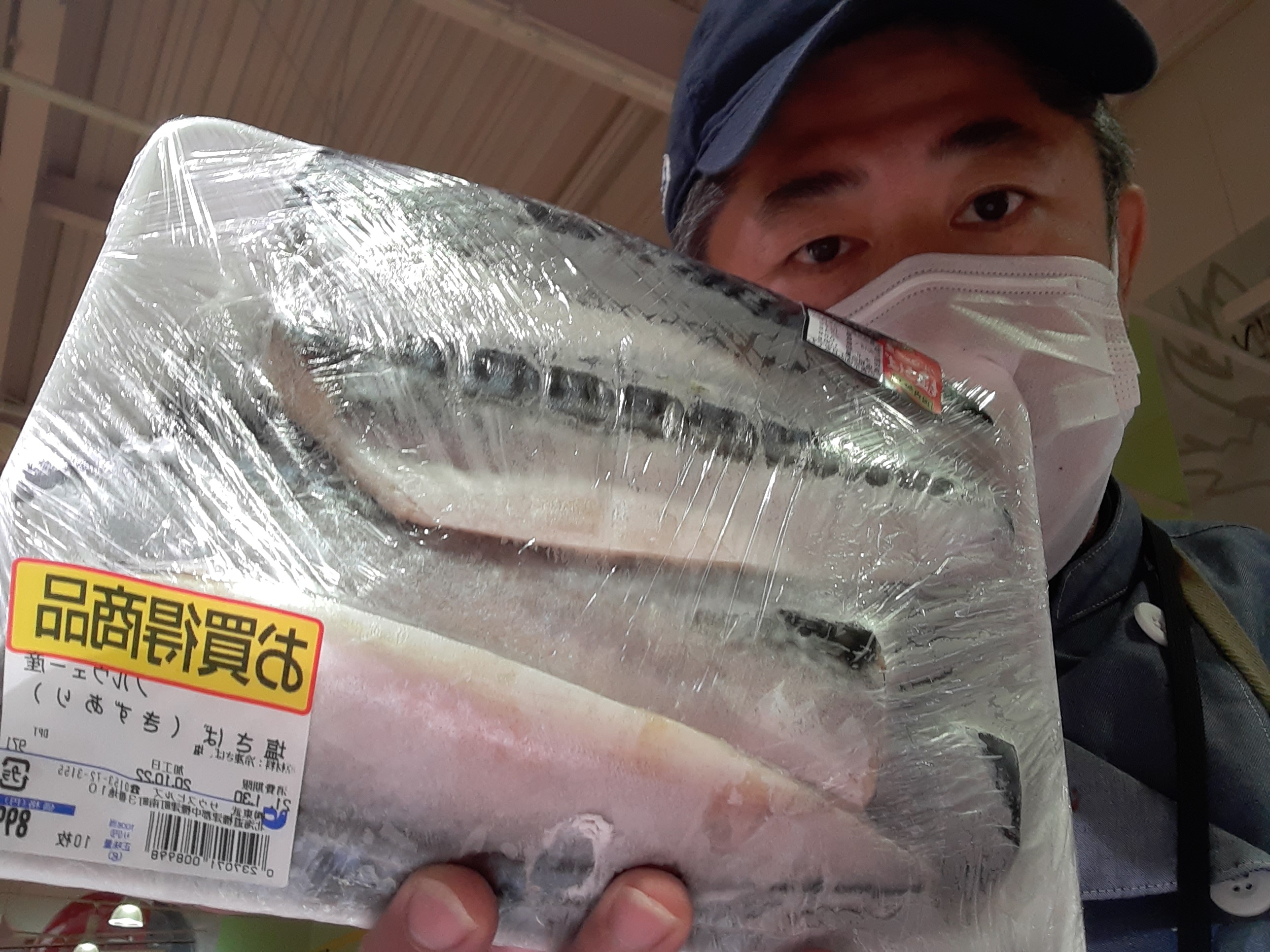 おはようございます。本日は冷凍ノルウェー産塩さば(きづもの)10尾入って899円!ご飯のおかずに、お弁当のおかず、などなどいろいろと美味しく調理が楽しめる逸品!是非とも鮮魚コーナーでお待ちしています。