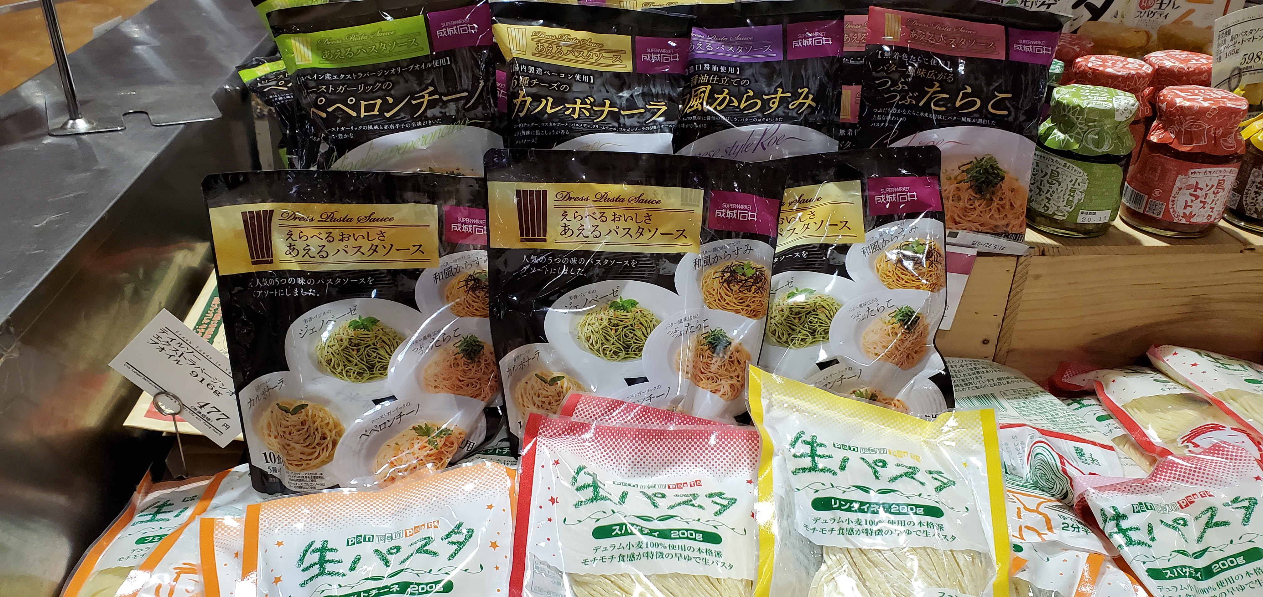 只今、生パスタとパスタに合うあえるだけの成城石井のパスタソースを品揃えしていて大変好評です。ソースは単品のほか5つの味が楽しめるパックもあります。ぜひ、生パスタとソースのセットで、ご利用お待ちしております。